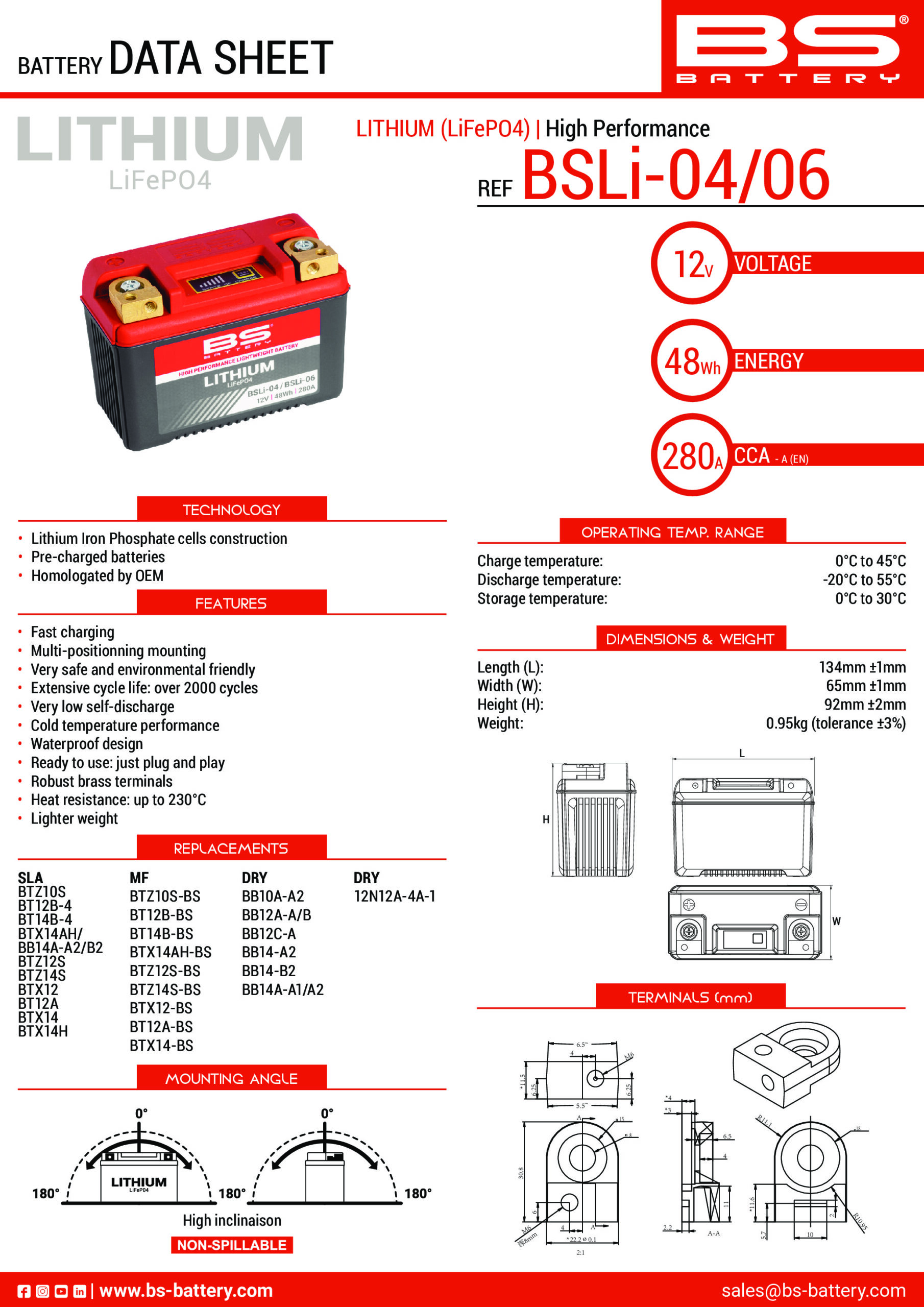 BSLI-04/06 Lithium Battery, 48Wh, 280 Amps
