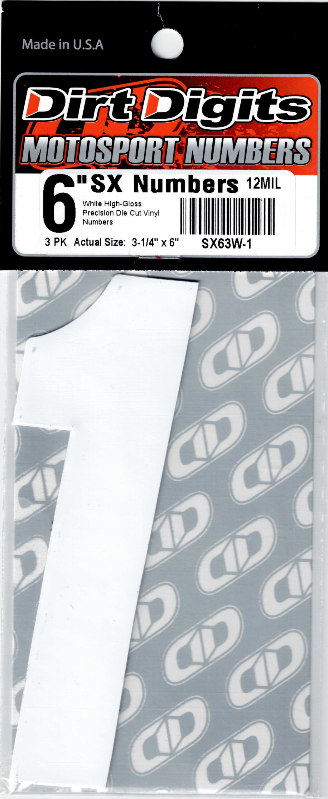 #1 6″ Tall White “SX” Stick-On Race Numbers – 3 Pack
