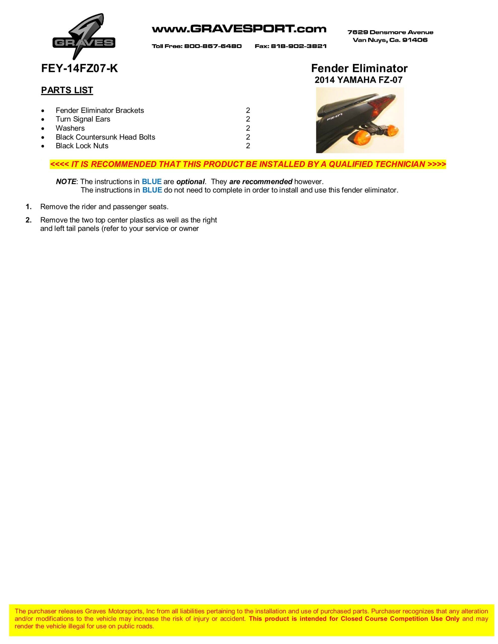 Fender Eliminator Kit For 2017+ Yamaha YZF R6