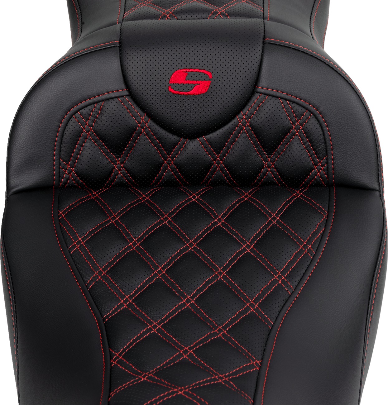 Saddlemen Roadsofa Seat with Backrest Red Stitch For Harley FL 08-23