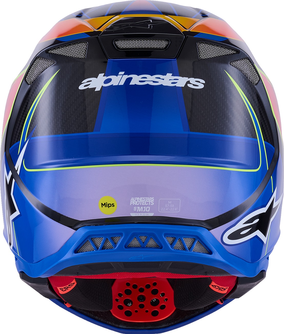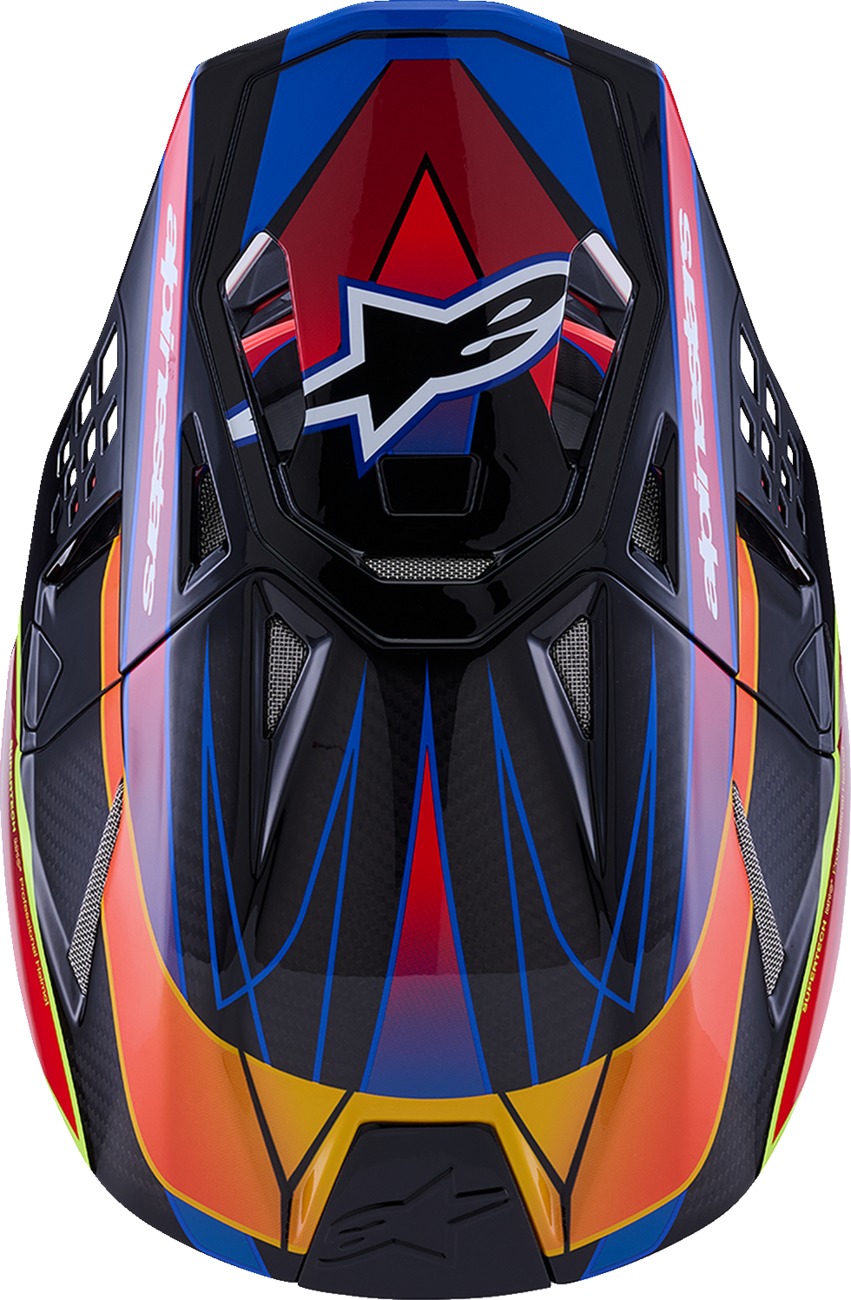 The Alpinestars Supertech M10 Era MIPS Helmet in Gloss Blue/Red/Yellow Fluo (Large) delivers top-tier protection and comfort for off-road riders. Designed with a streamlined, aerodynamic profile, the S-M10 minimizes external load points and reduces friction during impacts to better protect your head, neck, and spine. The helmet features a dedicated shell size per fit for optimal comfort and weight, and integrates the MIPS® Multi-directional Impact Protection System. Its chin bar is sculpted for collarbone clearance, while a soft EPS liner and flexible rubber compound further reduce injury risks. The A-Head Fitment System allows easy adjustment of helmet angle and height, and the helmet is ultra-ventilated with 28 intake and exhaust ports. Additional enhancements include Eject helmet removal technology, removable cheek pads, and an Emergency Release System. Certified to ECE R 22.06/DOT standards.