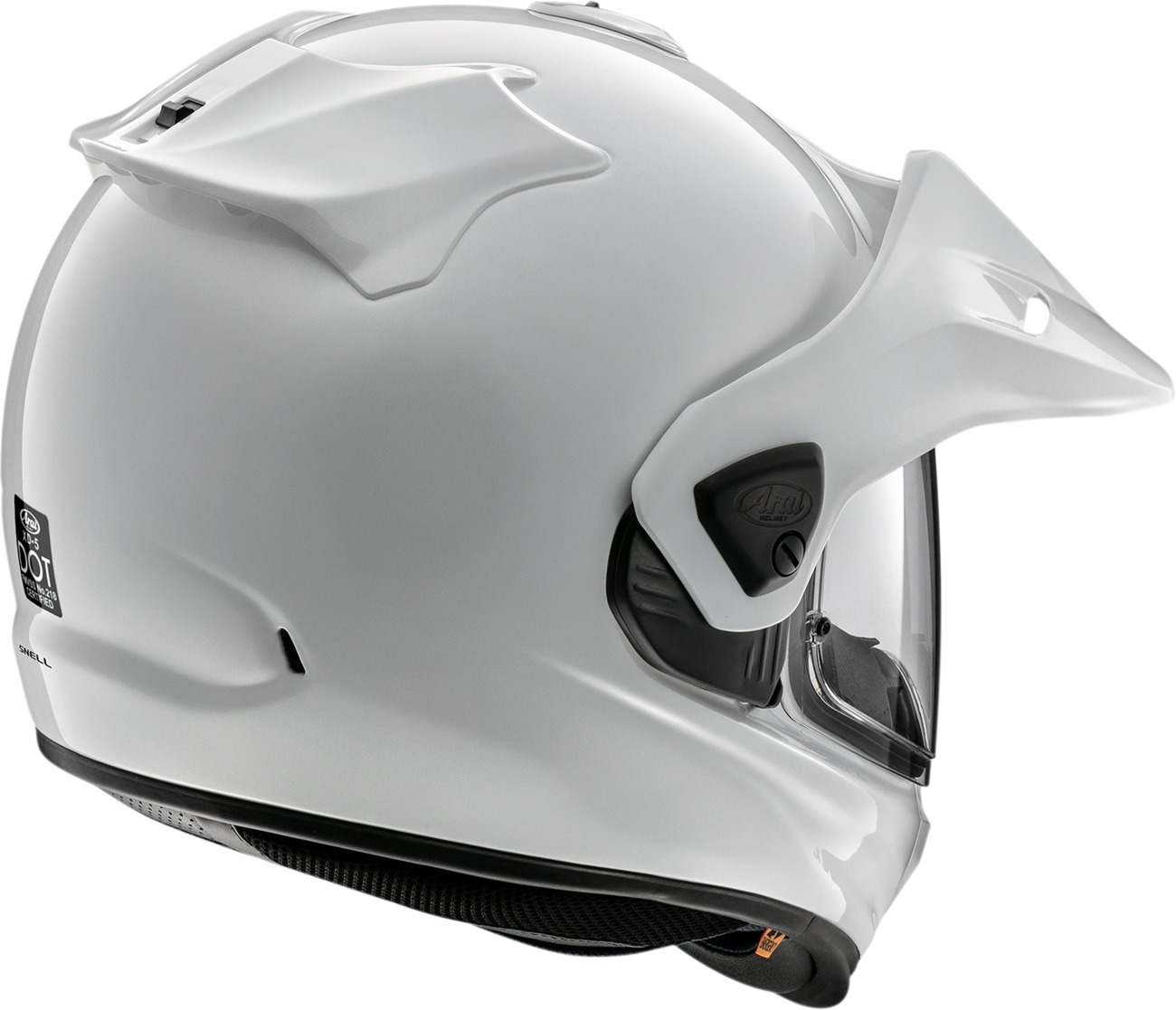 The Arai XD-5 Helmet is engineered for adventure, dual-sport, and street riders seeking premium protection and versatility. Featuring a PB-cLc² shell reinforced with a super fiber belt for enhanced strength, the XD-5 incorporates the VAS-A shield system for improved ‘glancing off’ impact performance and quick, tool-free shield swaps. Its peak is designed for superior ventilation, high-speed stability, and sun protection. Multiple ventilation controls, including an innovative mouth and inner shutter, allow personalized airflow and help minimize shield fogging. The odor-resistant interior is micro-fit adjustable, with removable foam layers for a custom fit. The helmet also features speaker pockets and flat Hyper-Ridge® surfaces for easy communicator installation. A retractable air flap spoiler reduces wind intrusion and hot air, enhancing long-ride comfort. The XD-5 combines safety, comfort, and adaptability for the most demanding rides.