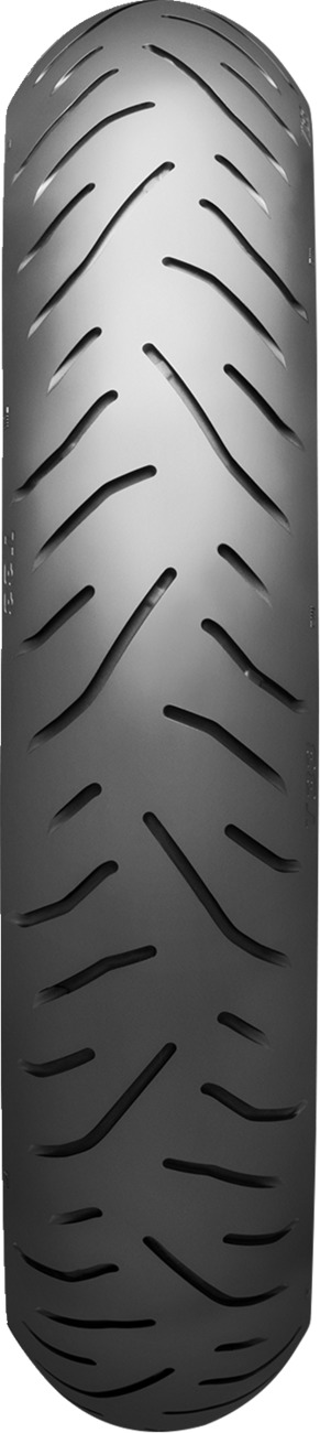 The Bridgestone Battlax Sport Touring T33F tire delivers premium performance for riders who demand long-lasting comfort and reliability. As the evolution of the Battlax Sport Touring T32, the T33 is designed with an optimized tread pattern and enhanced compound to provide 47% longer wear than its predecessor. Riders benefit from effortless handling, outstanding wet weather traction, and stable performance in both urban and highway environments. Engineered as a front tire specifically for sport touring motorcycles, the T33 inspires confidence in wet and dry conditions, ensuring you can enjoy long-distance rides with safety, performance, and comfort.