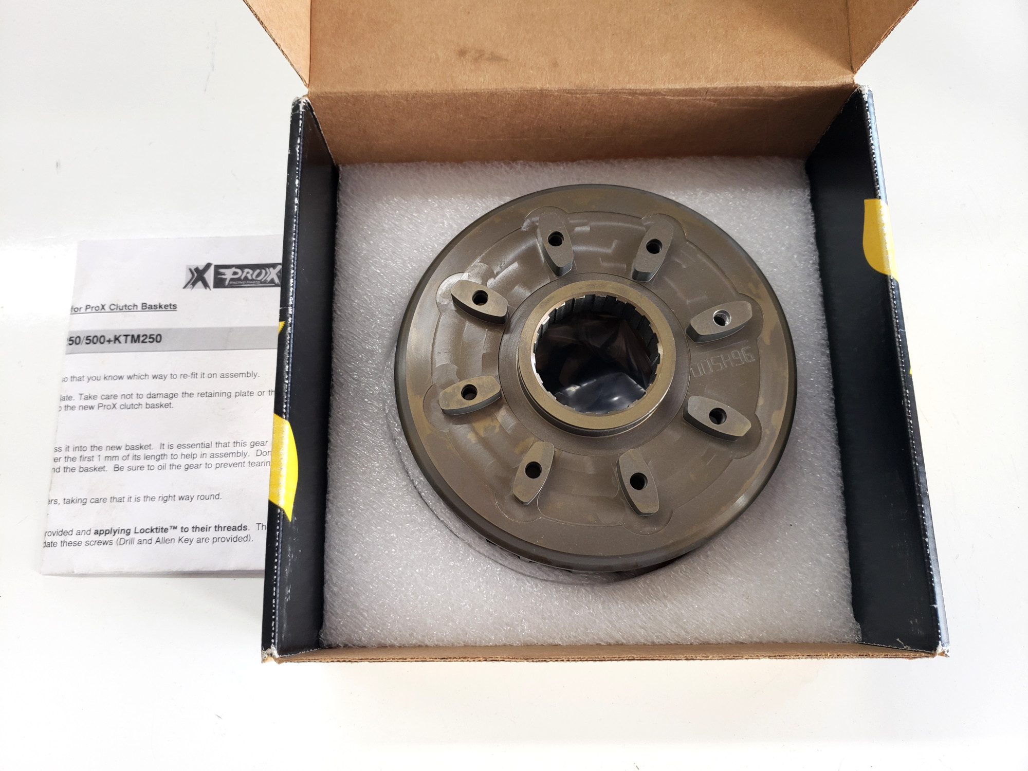 The special added Teflon coating seals the coating to create a near frictionless surface for the clutch plate tabs to glide upon. All ProX clutch baskets comes with pre-applied thread locker fasteners and an inbus tool.