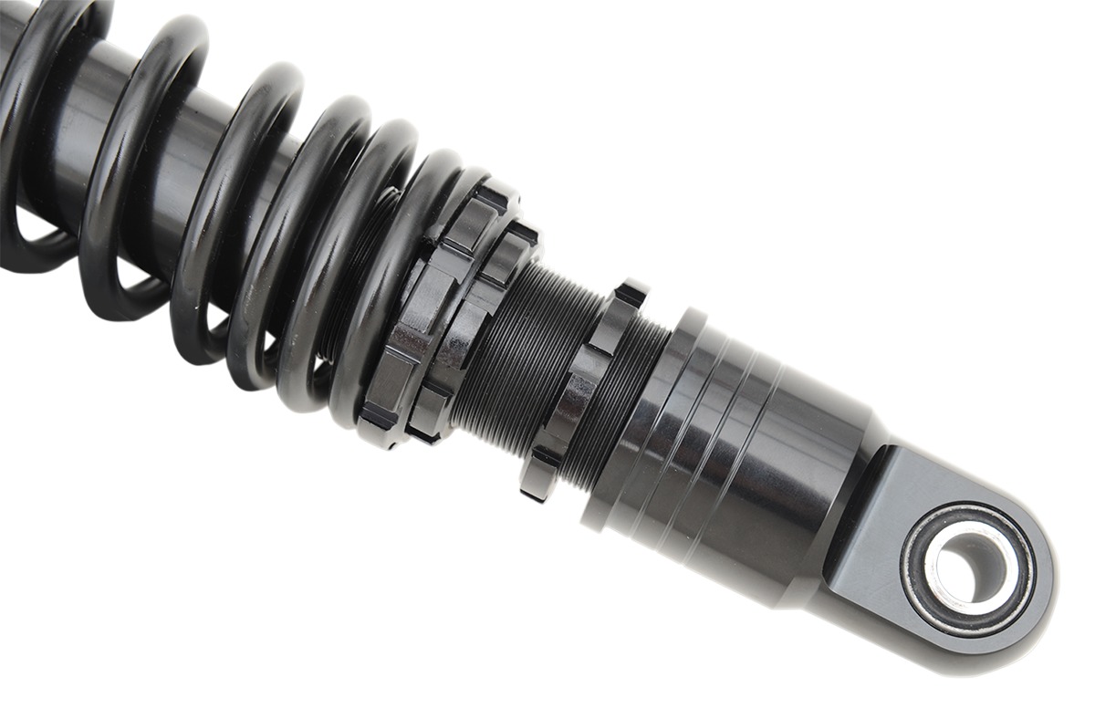 Upgrade your Harley-Davidson Touring model with Drag Specialties Premium Ride-Height Adjustable Rear Shocks. Featuring nitrogen-charged steel monotube damper bodies and hard chrome-plated shafts, these shocks deliver a smooth and comfortable ride with their dual-rate progressive wound springs. Adjustable spring preload and ride-height adjustability of +/- 1/2" from the listed 11" length allow you to customize your setup. The black finish includes black springs, damper bodies, and end caps/eyelets. These shocks use your existing hardware for installation.