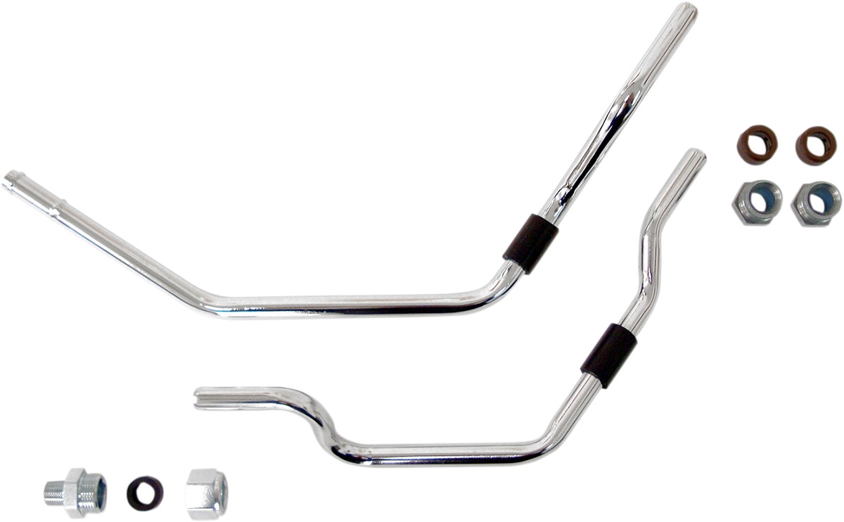 The Drag Specialties Chrome Oil Filter Line Kit is designed to replace the oil filter lines on select Harley-Davidson® Softail models. This kit includes OEM-style chrome steel feed and return lines for durable and attractive performance. Also included are one compression fitting, one seal, two seals with ferrule, and two compression nuts to ensure a secure installation. Constructed from high-quality steel with a chrome finish, this kit is built to match the original fit and function while enhancing your bike’s style. Perfect for restoring or upgrading your oil line system.