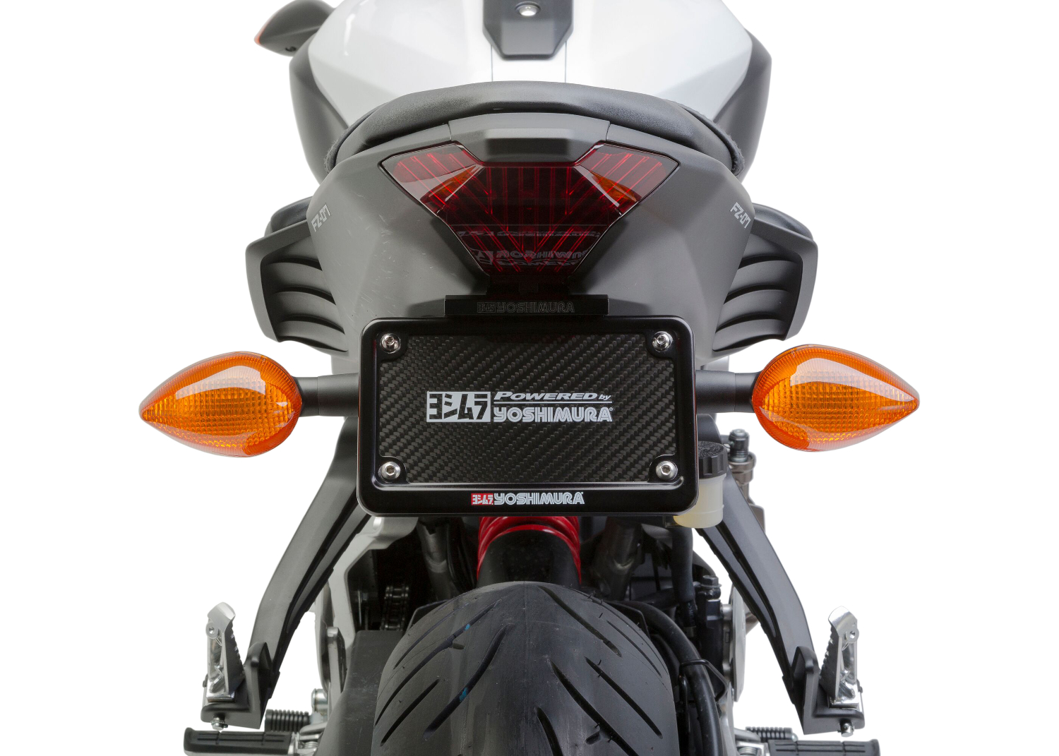 - Black anodized aluminum license plate frame with silk screened Yoshimura logo included