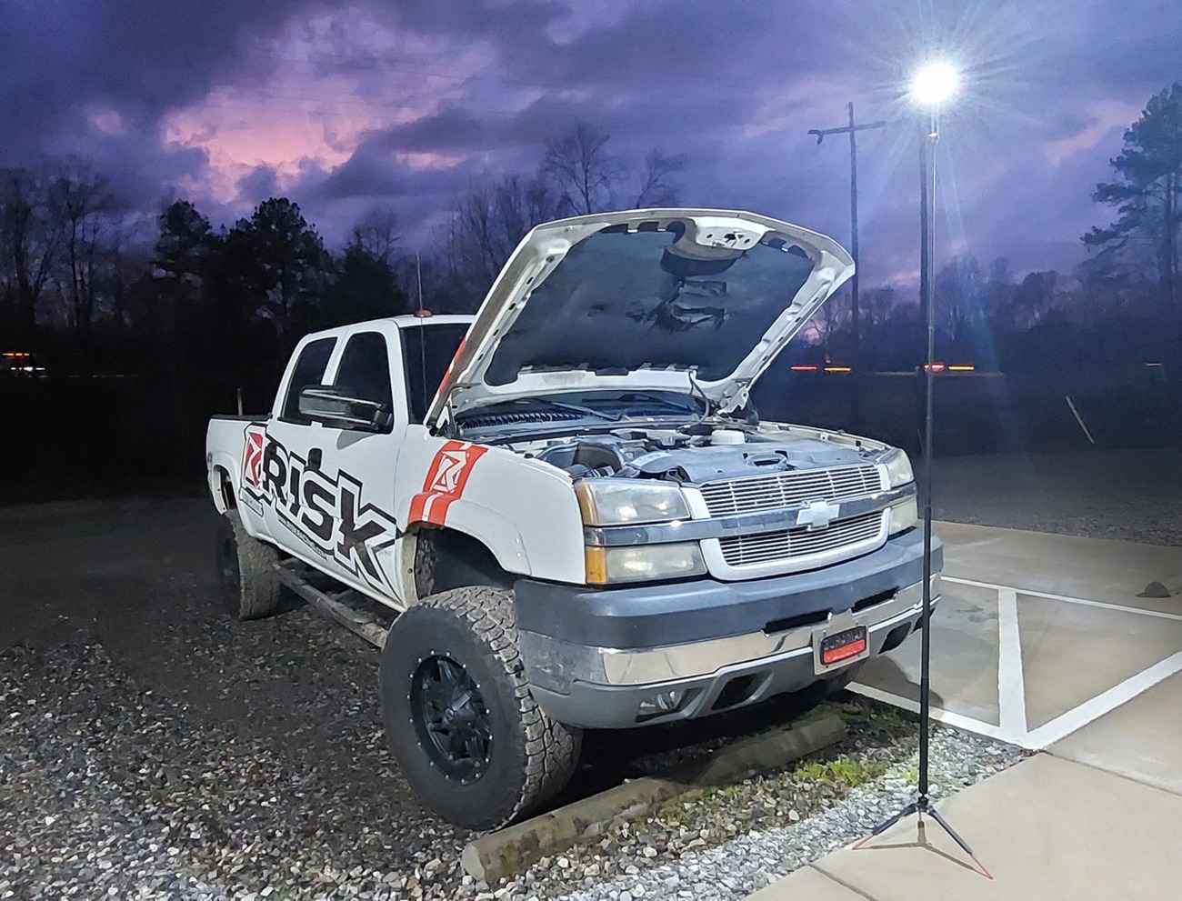 The FLi-PRO Telescoping Light by Risk Racing is a versatile and innovative lighting solution designed for various indoor and outdoor applications. It features a removable flashlight and a telescoping pole that extends up to 8 feet, providing 360° area lighting with a ring of high-intensity LEDs directed toward the ground. The light can be controlled remotely with a wireless remote (range up to 15 feet), adding convenience for users. Key Features: – **Brightness & Modes**: Delivers a maximum of 1200 true lumens with six lighting modes, including spotlight, floodlight, combined spotlight & floodlight, red floodlight, flashing red floodlight, and flashing floodlight. The last mode used is remembered upon restart. – **Spotlight & Floodlight**: The center CREE LED spotlight outputs up to 400 lumens with a 150m beam distance, while the floodlight provides 900 lumens with a 30m beam distance. Red flood LEDs help preserve night vision. – **Battery & Charging**: Powered by a rechargeable 4000mAh 21700 lithium-ion battery, with a USB-C charging port. Battery life varies by mode, with up to 4.5 hours in spotlight mode and 1.5 hours in high flood mode. – **Build & Durability**: Constructed with an aluminum/ABS body, fiberglass rods, a durable acrylic lens, and steel hooks. It is IP54-rated for water resistance and impact-resistant up to 1 meter. – **Adjustable & Portable**: Features a fully adjustable tripod and telescoping rods for customizable lighting height and angles. The lightweight design (1 lb 14 oz with battery) makes it easy to carry and transport. **Includes:** FLi-PRO flashlight, telescoping rods, sturdy tripod, wireless remote, USB-C charger, and a carrying bag. This multi-functional lighting solution is ideal for camping, work sites, emergency situations, and general outdoor use, providing reliable and adaptable illumination wherever needed.