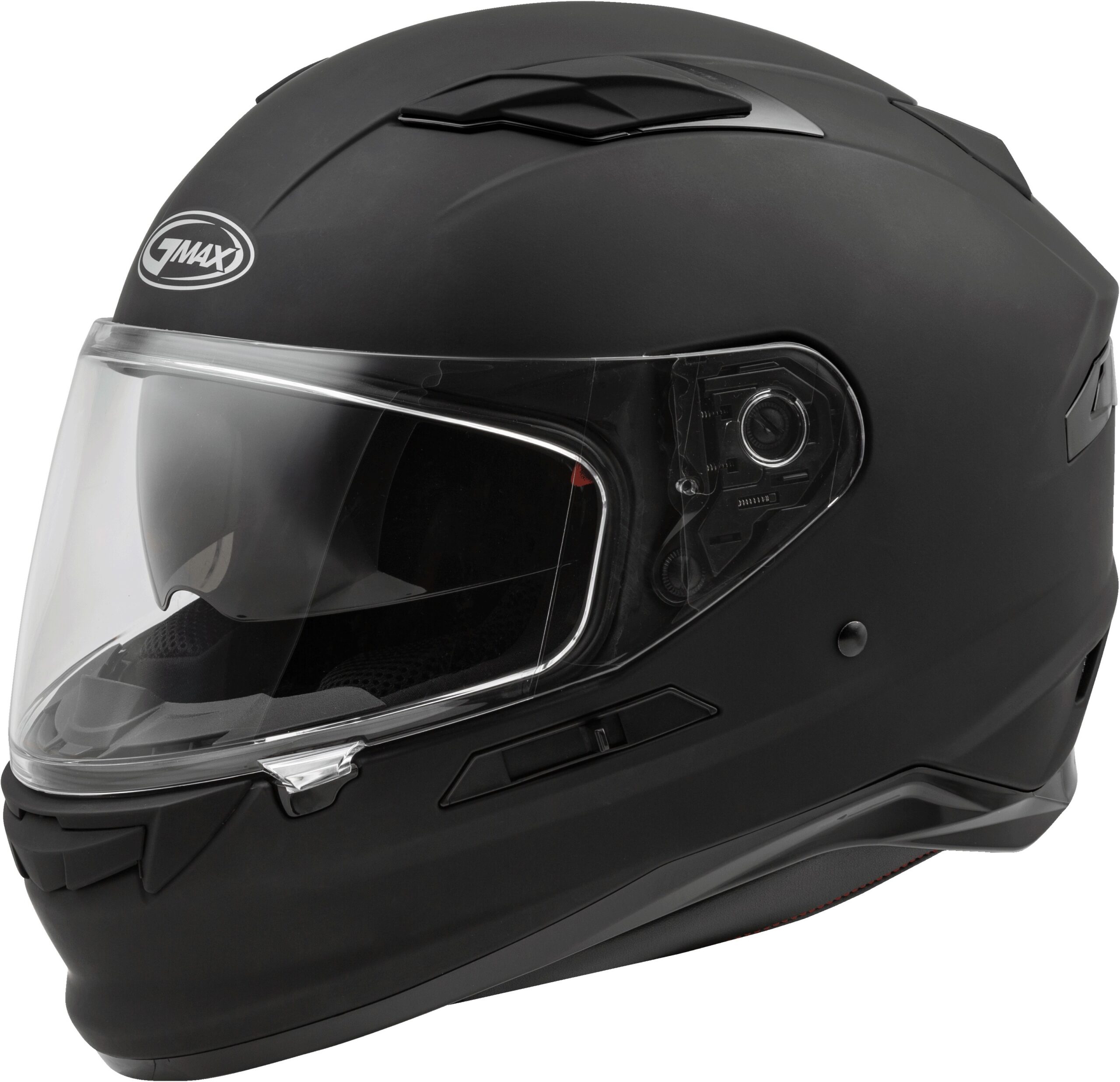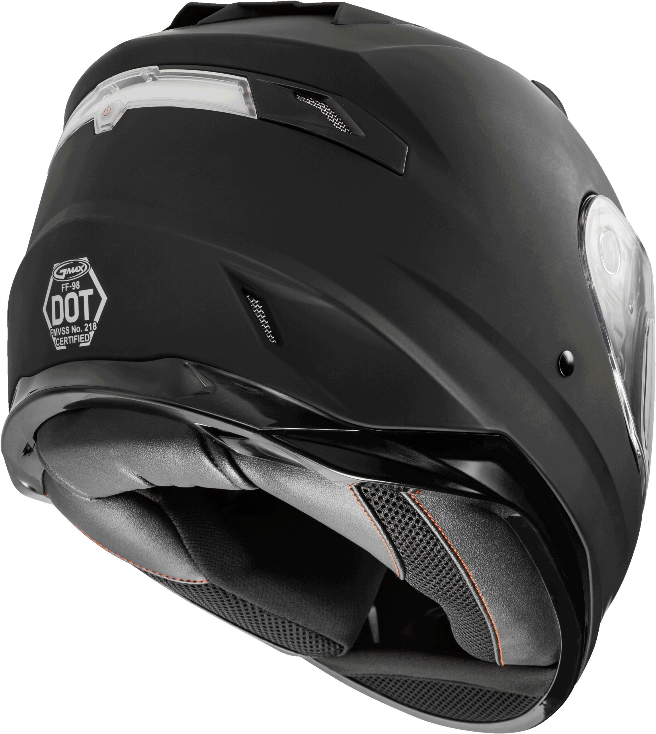 The GMAX FF-98 Full Face Helmet in Matte Black (size XS) features a lightweight Poly Alloy shell and is DOT approved. It includes COOLMAX CORE technology and a SpaSoft™ interior that wicks moisture, eliminates odor, and can be removed, adjusted, and washed for customizable comfort. This helmet is equipped with eight intake and exhaust vents for optimal airflow, a drop-down sun shield with anti-fog coating, and a UV400 coated shield for 100% UV protection. It also features a quick-release face shield mechanism with a shield lock, integrated multifunction red LED rear light, and is intercom compatible with built-in speaker pockets. A breath deflector and chin curtain are included for added comfort and functionality.