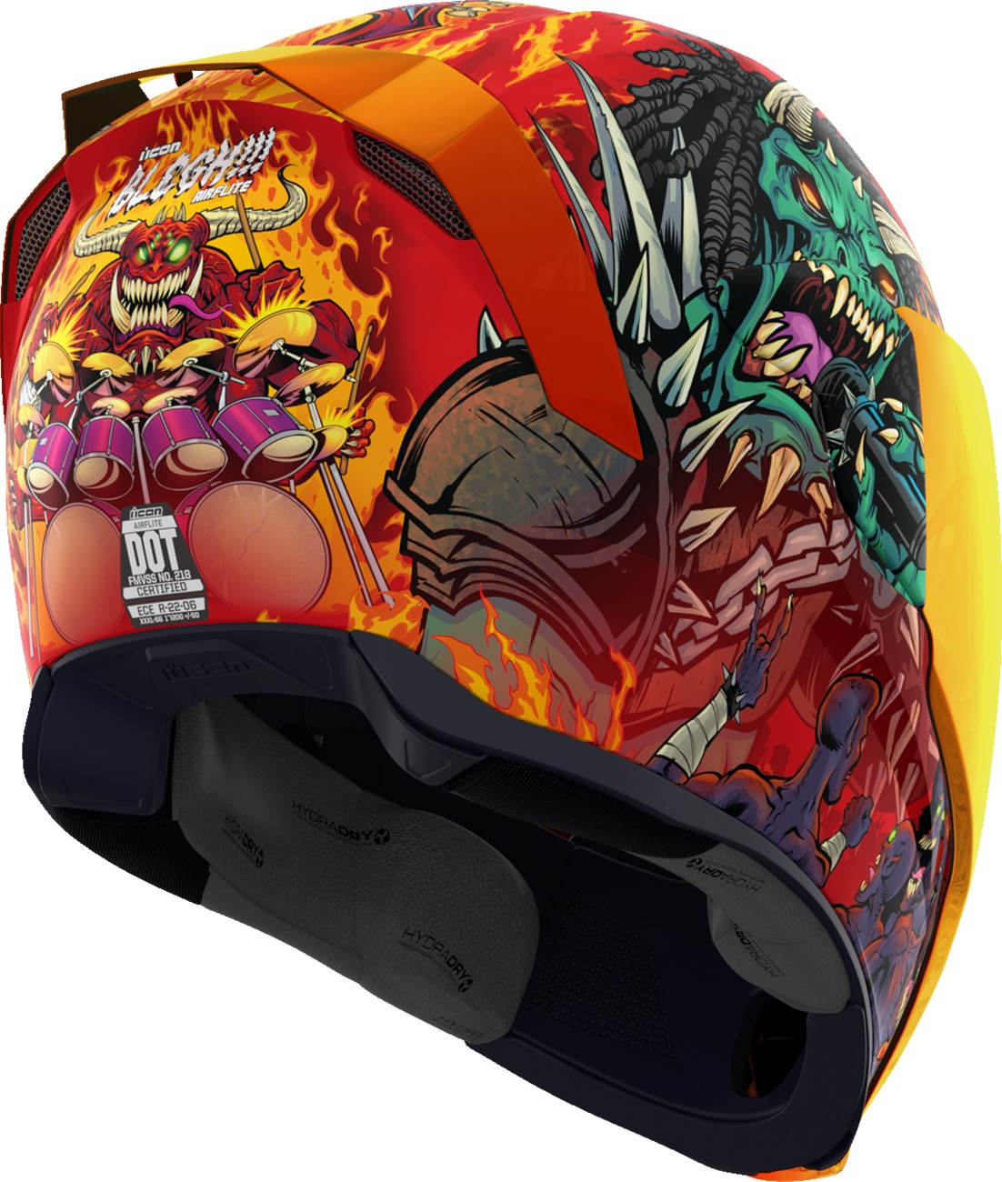 The ICON Airflite Blegh MIPS Helmet is designed for riders who demand safety, style, and comfort. Featuring an injection-molded polycarbonate shell for superior strength, this full-face helmet includes a Fog-Free Dropshield™ with an exterior switch. The recessed twin-channel supervent system ensures optimal airflow, while oversized intake and exhaust ports enhance ventilation. The removable Hydradry™ moisture-wicking liner keeps you comfortable during long rides. Internal speaker pockets are compatible with ICON’s R.A.U. Bluetooth device. This helmet also includes both a Clear and RST Sunset fog-free Fliteshield™. Meets ECE 22.06 and DOT FMVSS-218 standards.