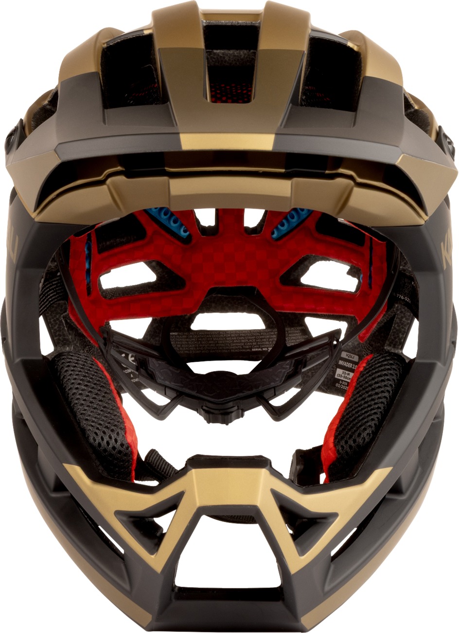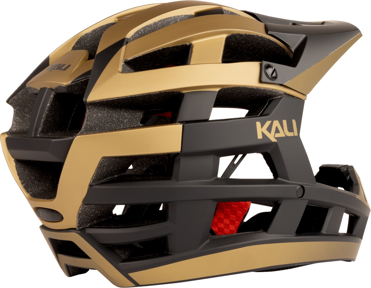The KALI Invader 2.0 Bicycle Helmet delivers advanced protection with its Composite Fusion™ technology, bonding the helmet shell and foam for a thinner, lighter, and stronger construction. The unibody design meets rigorous chin bar testing standards. Features include antibacterial pads and cheek pads, an adjustable visor, a Fidlock™ closure system, and the Frequency Fit System for vertical and dial adjustments. Finished in a stylish matte black and gold graphic, this XS-M adult helmet is suitable for various cycling adventures.