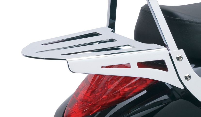 Formed from a single sheet of steel, that’s been laser cut, then chromed and polished to a deep finish. You get the picture, another great Cobra rack, just with a different look. Think of going with this one when you’ve tricked out your bike with a selection of billet accessories. Same great fit, same great function. Now, don’t you have somewhere to go, say, three or four states away?