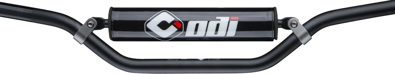 Upgrade your ride with the ODI 7/8" Podium Original Replacement Handlebar, designed for off-road and ATV use. Constructed from strong 7075 alloy and featuring a solid crossbar, this handlebar fits most OEM, mini, and ATV clamp diameters. It includes a laser-etched ODI logo, a knurled left slide for better grip adhesion, and comes with a black crossbar pad. The anodized black finish ensures durability and a sleek look for any setup.