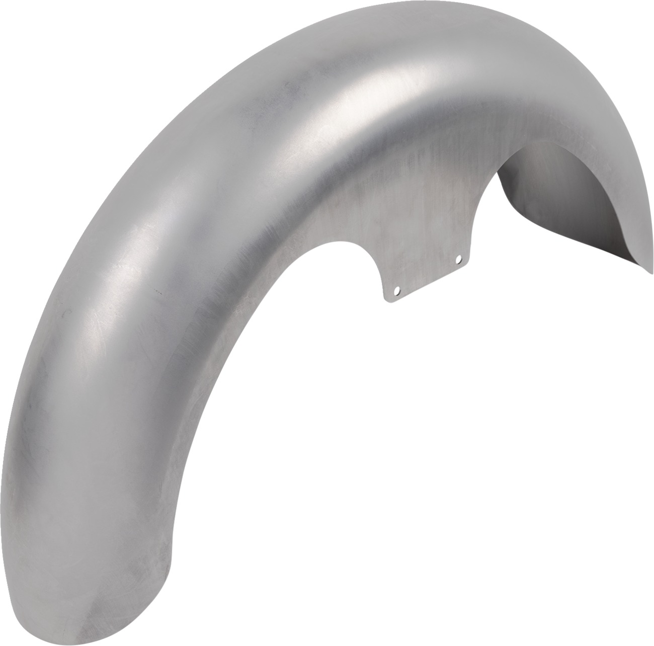 The Paul Yaffe Bagger Nation Thicky Front Fender for 23" wheels is a premium, direct bolt-on replacement for select Harley-Davidson® Touring models. Constructed from one-piece 14-gauge steel with no welds, this fender features a lengthened front and rear, squared ends, and thicker sidewalls for enhanced durability and style. The increased surface area is ideal for custom paint work. It arrives in a natural steel finish ready for prep and paint, and comes pre-drilled for straightforward installation. A free set of satin spacers/adaptors is included, with upgrades to black or chrome available. Made in the USA. Please note: Bare metal surfaces may exhibit mild surface rust from shipping or storage, easily removed before finishing. Real Steel Cafe Fenders can be modified to fit 1987-2005 Touring models by notching the fender mount tabs and adjusting spacer width.
