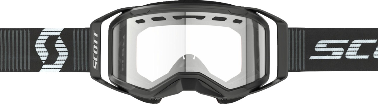 The Scott Prospect 2.0 SMB Goggle is the second generation of Scott’s flagship snowmobile eyewear, engineered for extreme winter conditions. Featuring the innovative Quick Lens Release System, you can rapidly change lenses by unlocking the four lens locking pins, without compromising the secure fit ensured by the Lens Lock System. Enjoy a massive field of vision and all-day comfort with NoSweat Big 3-layer molded face foam and articulated outriggers for a perfect helmet fit. The clear OptiView double lens provides 100% UV protection, while ACS Air Control System ventilation and NoFog™ anti-fog lens treatment ensure your vision stays clear in any weather. The extra wide, silicone-lined strap keeps the goggles securely in place. Includes a microfiber goggle bag and nose guard.