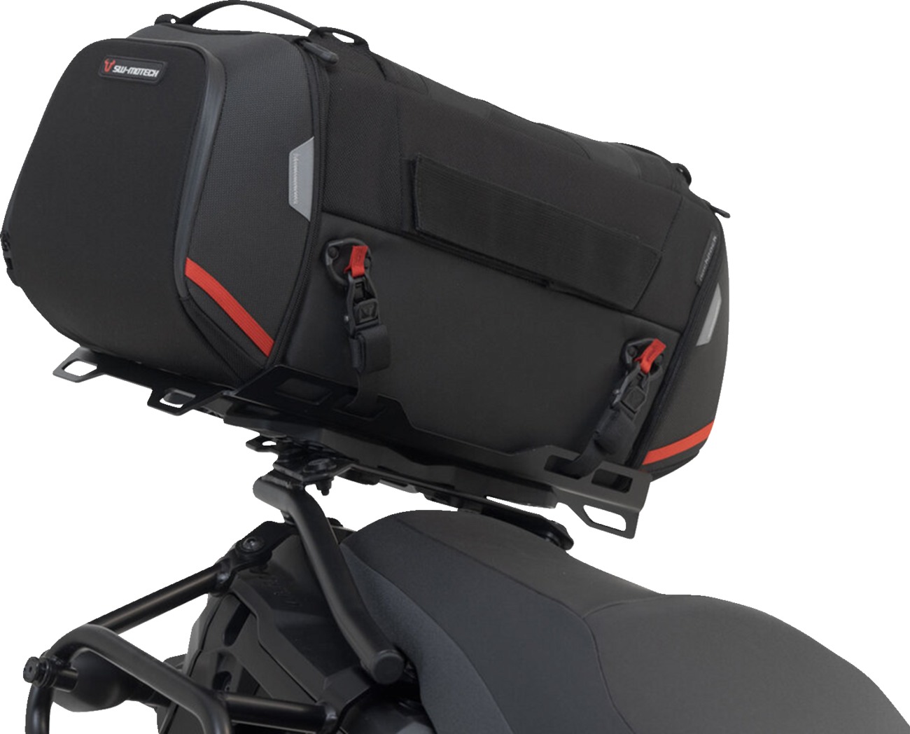 The SW-MOTECH Rackpack Tail Bag System is the perfect luggage solution for Suzuki V-Strom 650, 650 XT, and 650 ABS models. This kit includes the PRO Rackpack Tail Bag, the STREET-RACK, and a Luggage Rack Extension for the STREET-RACK. The PRO Rackpack features a modern design with a large zippered mesh compartment, two outer zippered pockets, and volume expansion zippers. Made of UV-resistant 1680D Ballistic Nylon, it offers durability, splashproof inner lining, and reflective details. The STREET-RACK is designed with bike-specific attachments and CNC precision, ensuring a perfect fit to the motorcycle’s mounting points while complementing sporty and compact bike designs. The robust aluminum construction of the rack and extension provides ample space for large tail bags and bulky luggage, making it an ideal choice for street riding enthusiasts.