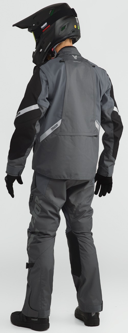 The THOR Terrain Over-the-Boot Pants are engineered for adventure touring, dual-sport, and off-road riding. Featuring an over-the-boot construction, these pants offer rip-stop, abrasion-resistant paneling in high-wear areas, and durable stitching throughout. Full grain leather panels are located inside the knees for optimal grip and long-lasting durability. Two high-volume pockets with waterproof zippers and an internal hip pocket provide ample storage. Strategically placed intake vents with waterproof zippers, Dura-motion paneling for flexibility, and a double-lock front closure system ensure comfort and secure fit. Dual side cinches allow precise waist adjustment. With taped zippers, a DWR coating, and Hipora membrane, these pants deliver increased water resistance. Mesh comfort liner and YKK® zippers add to the premium construction. Ideal for riders seeking performance and protection in tough conditions.
