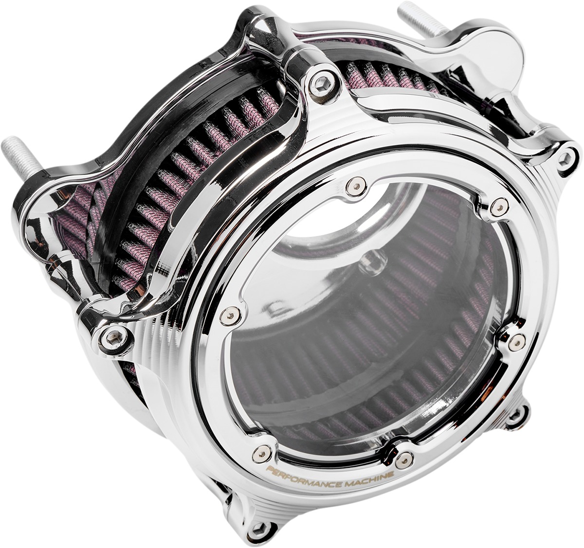 The Performance Machine Vision Air Cleaner allows you to see inside your bike’s intake system with its clear, UV- and abrasion-resistant polycarbonate lens. A CNC-machined billet aluminum bezel adds structural integrity and prevents cracking. The low-profile K&N filter element enhances airflow, making it a great alternative to stock units. It includes chrome hardware and gaskets for installation.