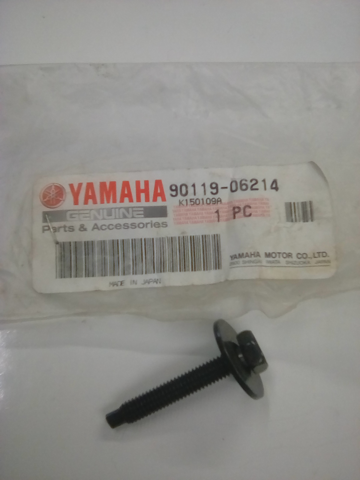 This is a genuine Yamaha replacement fastener: bolt with integrated washer, designed to meet factory specifications for fit and durability. Ideal for restoring or replacing missing or worn hardware on Yamaha vehicles.