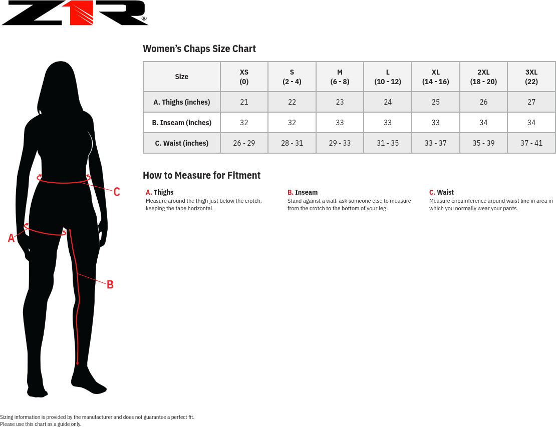 The Z1R Sabot Women’s Chaps in Black, size XL, are crafted from premium full-grain cowhide leather for both durability and classic style. These chaps feature a mesh polyester lining for comfort, diamond pattern accent-stitched panels for a unique look, and adjustable leather drawstrings with gussets on the thighs for a tailored fit. Full-length zippered legs ensure easy on/off, and raw-edge cuffs allow for trim-to-fit customization. Two hip pockets offer convenient storage for small essentials, making these chaps perfect for street and touring riders seeking both protection and comfort.