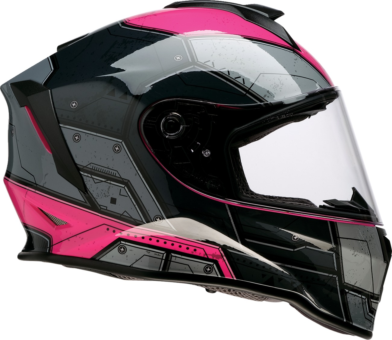The Z1R Youth Warrant Sentinel Helmet offers superior protection and comfort for young riders. Featuring an injection-molded polycarbonate shell, this helmet is designed for durability and safety. It includes a fully removable moisture-wicking liner and cheek pads for easy maintenance. The intake and exhaust vents help with temperature regulation, while the double D-ring closure system ensures a secure fit. This helmet meets ECE R22.06 and DOT FMVSS-218 standards for safety compliance. Its stylish Sentinel graphic in Pink/Gray with a gloss finish makes it a great choice for adventure touring, dual-sport, and street riding.