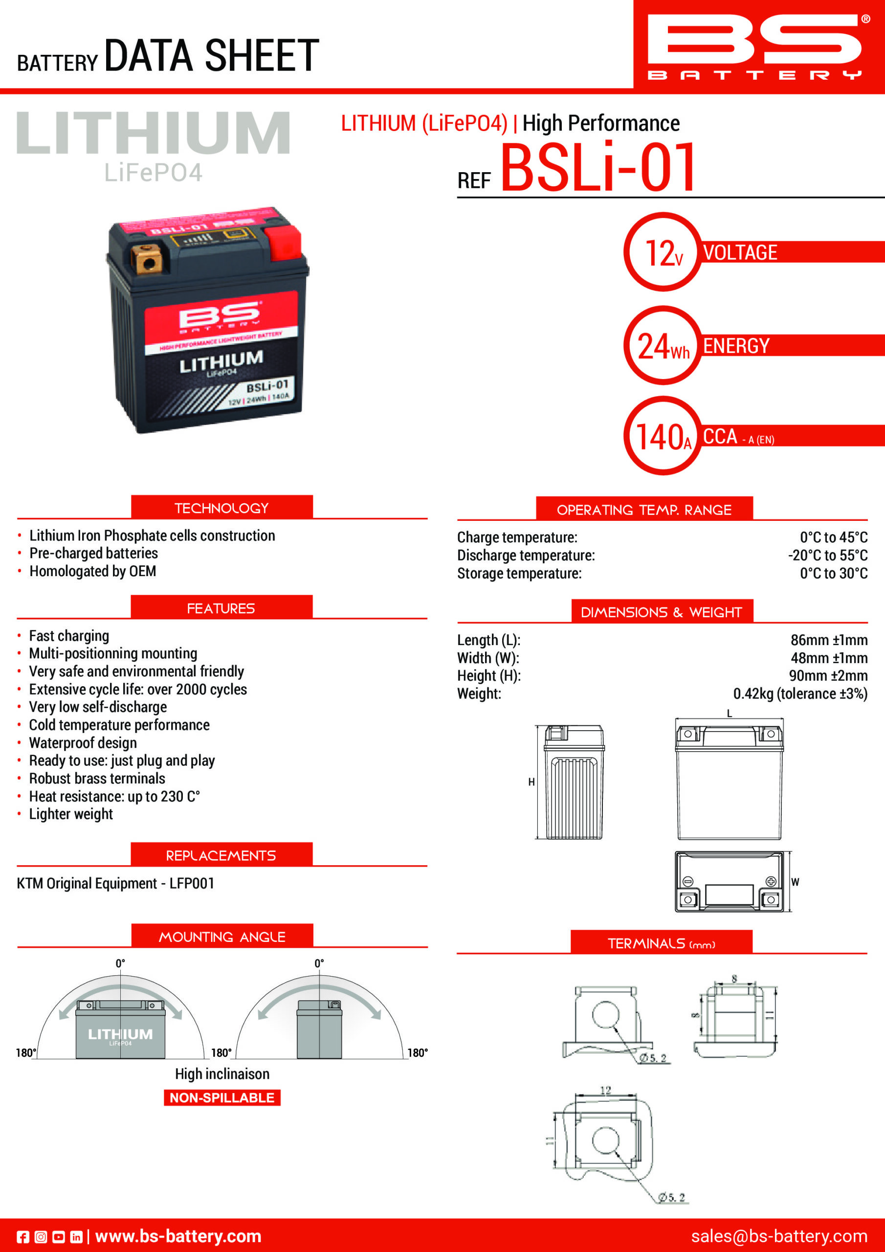 BSLI-01 Lithium Battery, 24Wh, 140 Amps