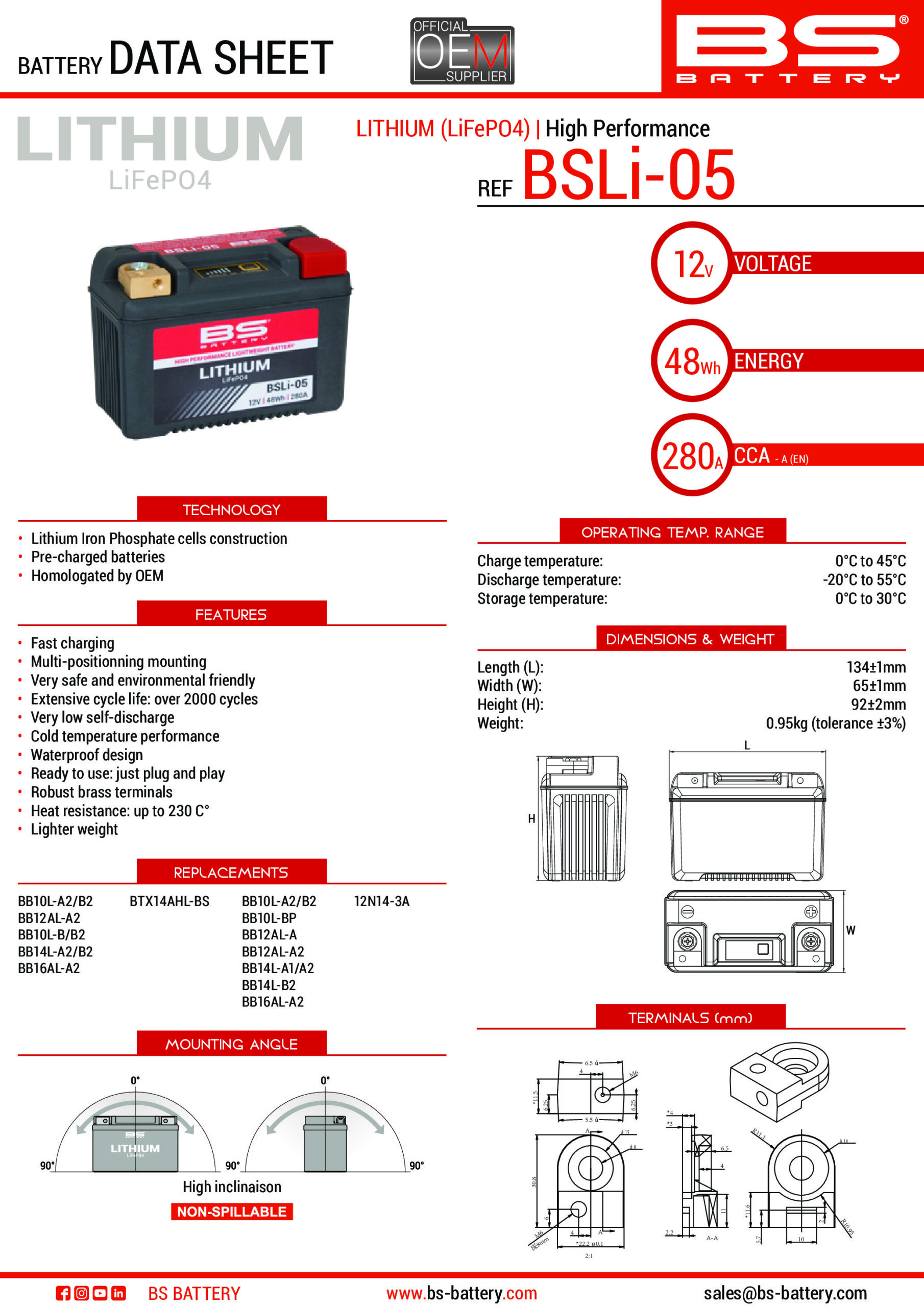 BSLI-05 Lithium Battery, 48Wh, 280 Amps