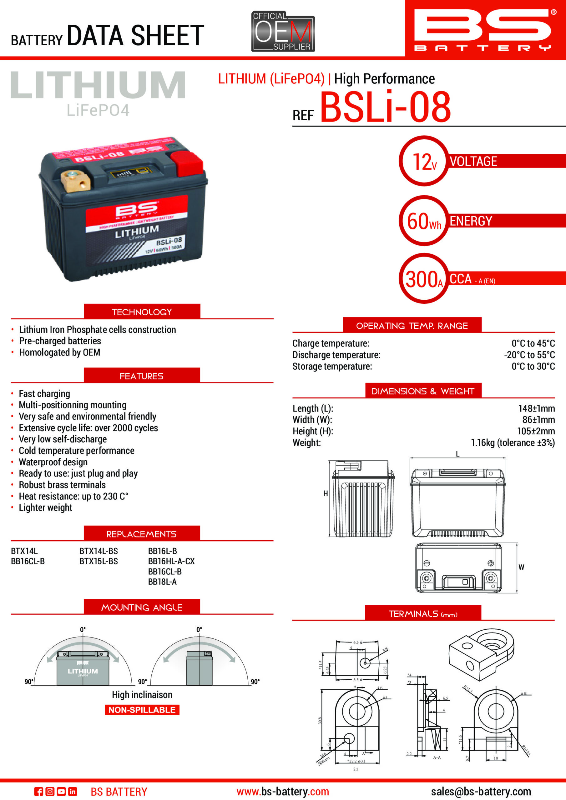 BSLI-08 Lithium Battery, 60Wh, 300 Amps