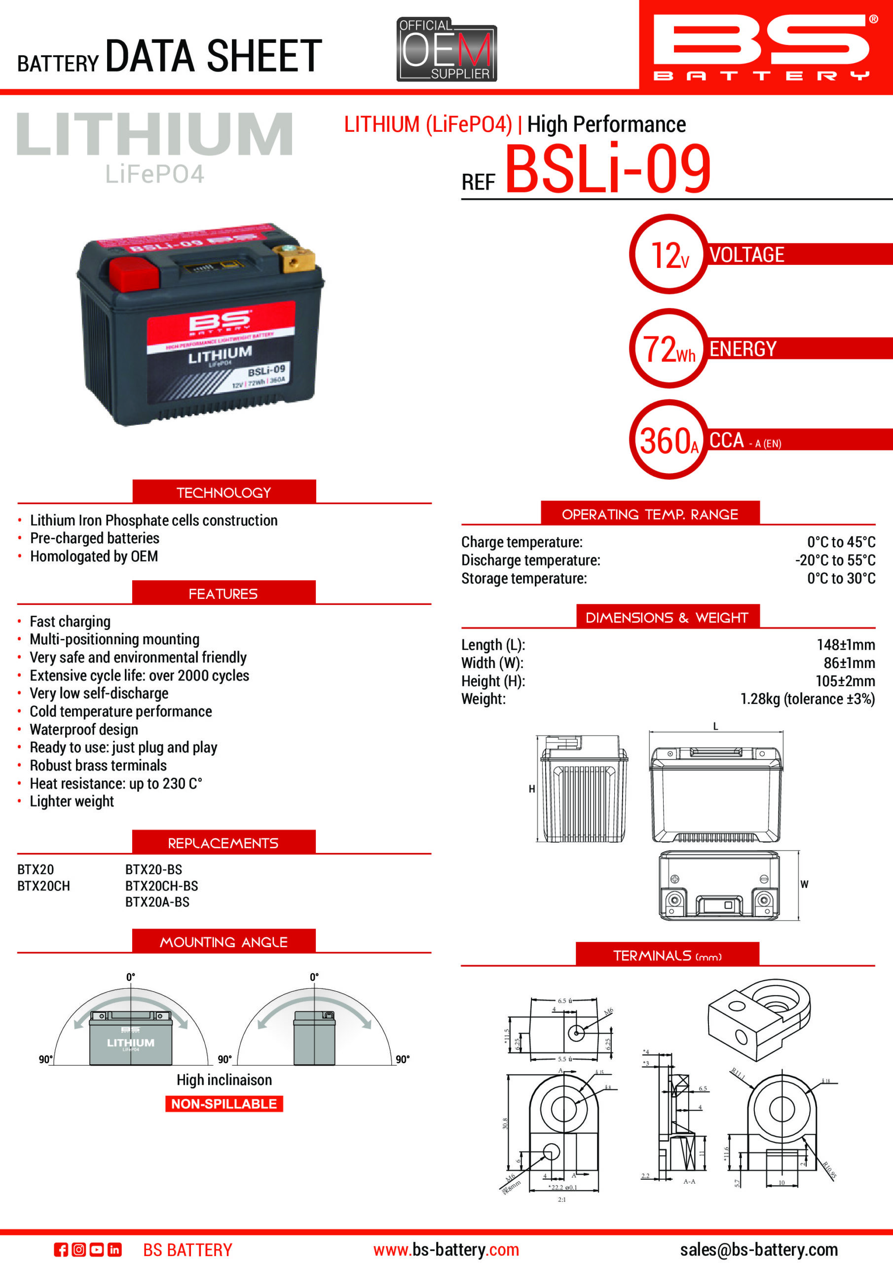 BSLI-09 Lithium Battery, 72Wh, 360 Amps