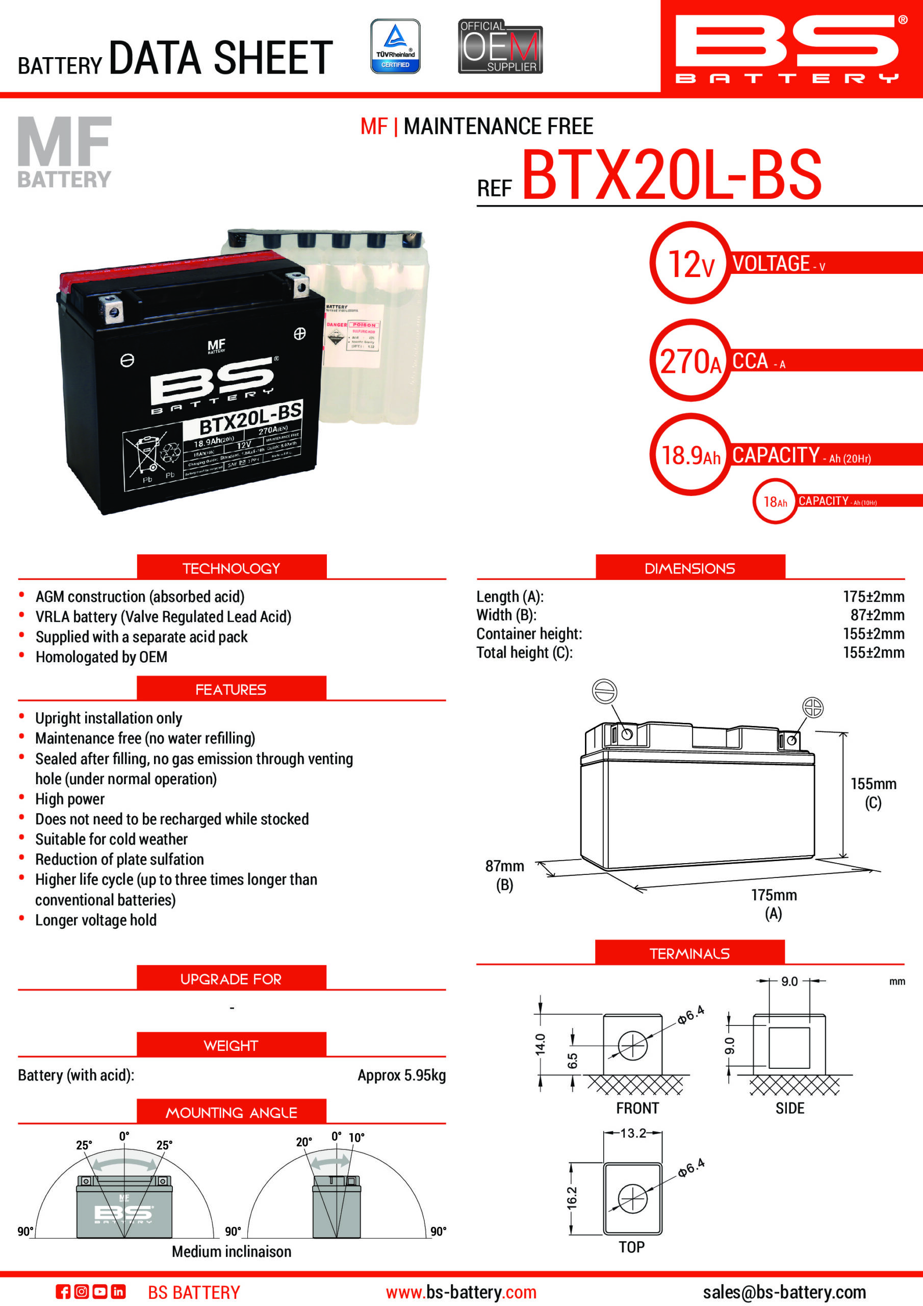 AGM Maintenance Free Battery YTZ5S-BS