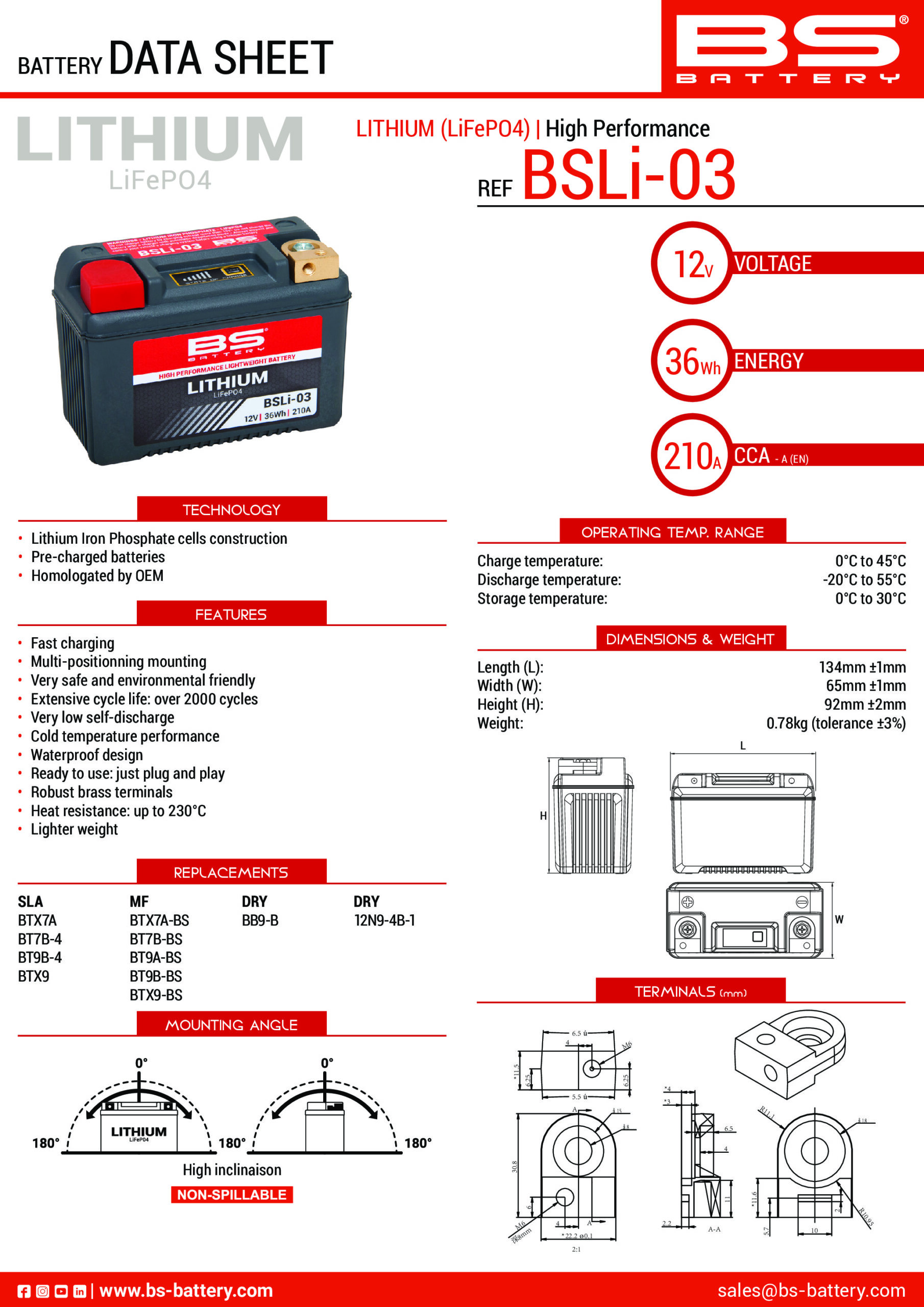 BSLI-03 Lithium Battery, 36Wh, 210 Amps