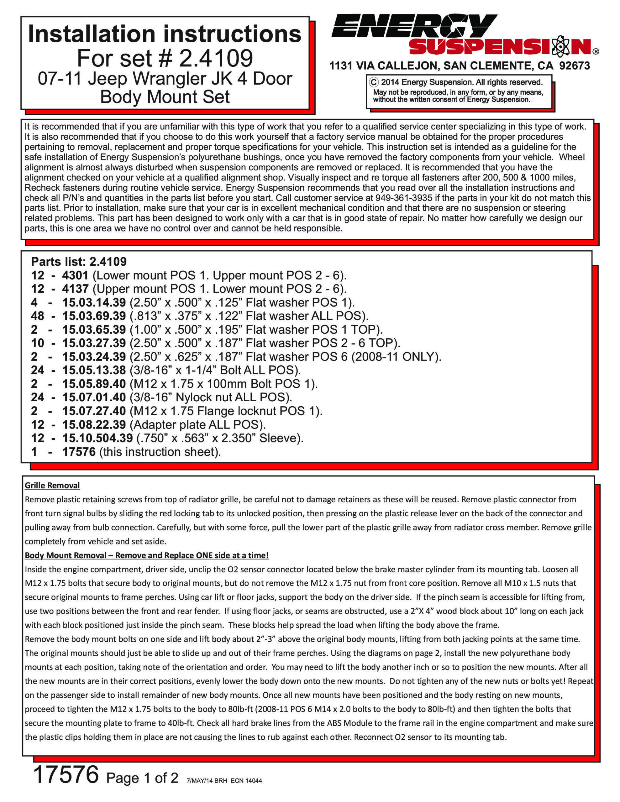 Body Mount Set Black w/ Hardware – Energy Suspension 2.4109G