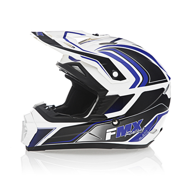 FMX N-600 2X-Large Motocross Helmet, White & Blue, Double D Closure, DOT