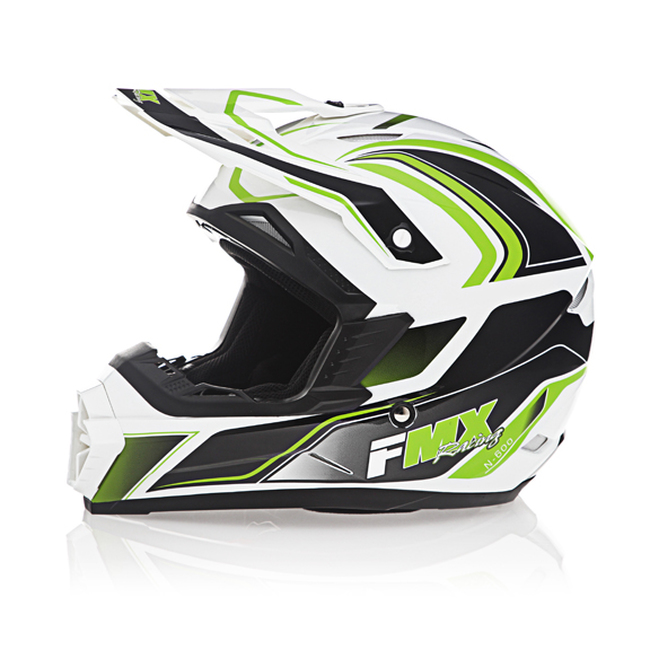 FMX N-600 2X-Large Motocross Helmet, White & Green, Double D Closure, DOT