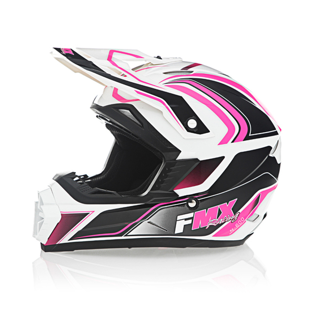 FMX N-600 2X-Large Motocross Helmet, White & Pink, Double D Closure, DOT
