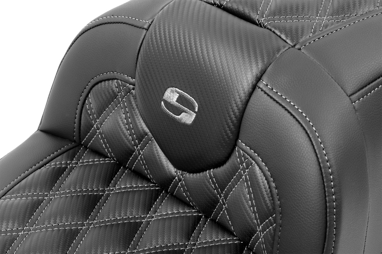 Saddlemen RoadSofa Seat with Backrest Carbon Fiber Lattice Gray FLTR/FLHX 23-24