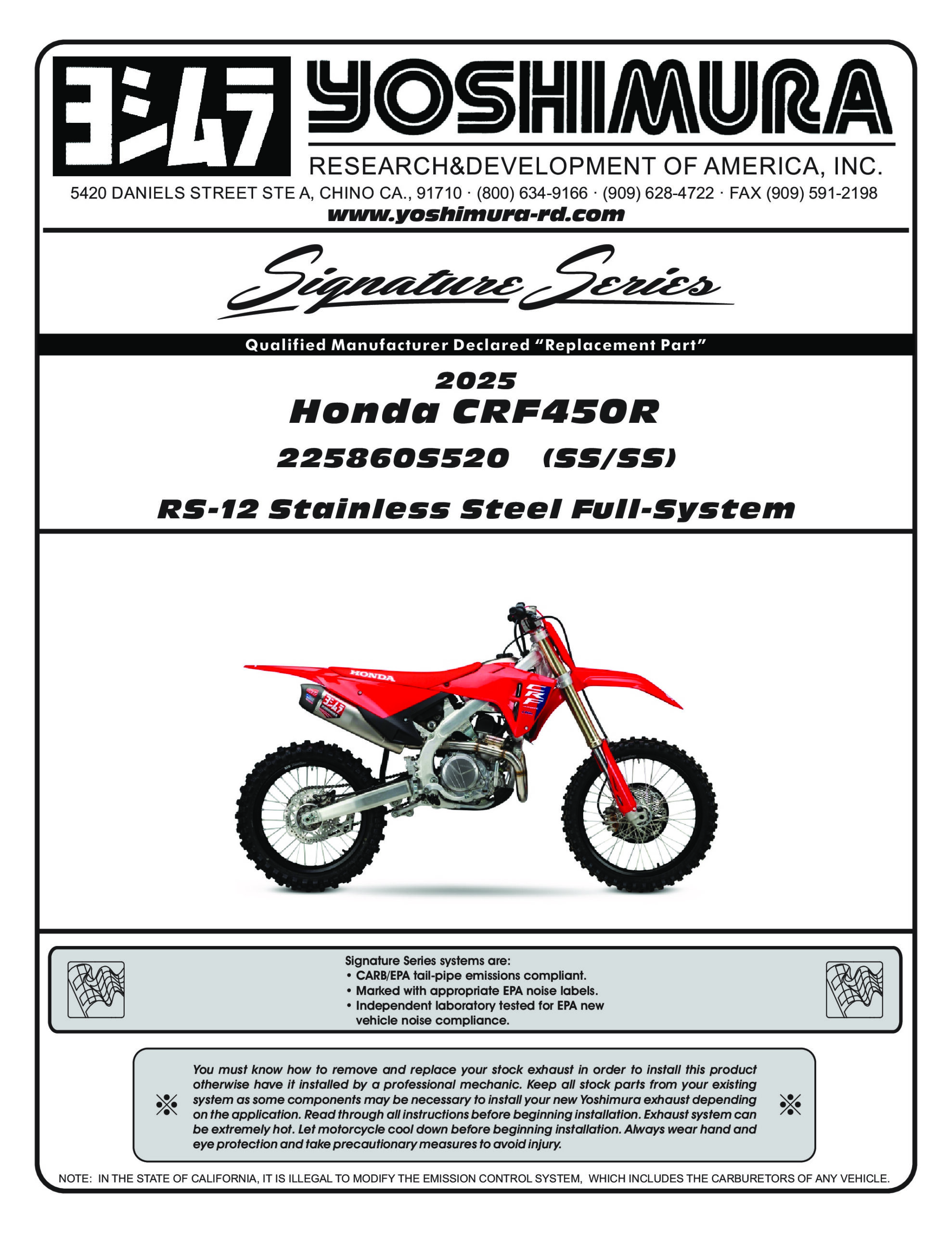 Yoshimura RS-12 Full Exhaust System Stainless/CF Tip Fits 2025 CRF450R/RX