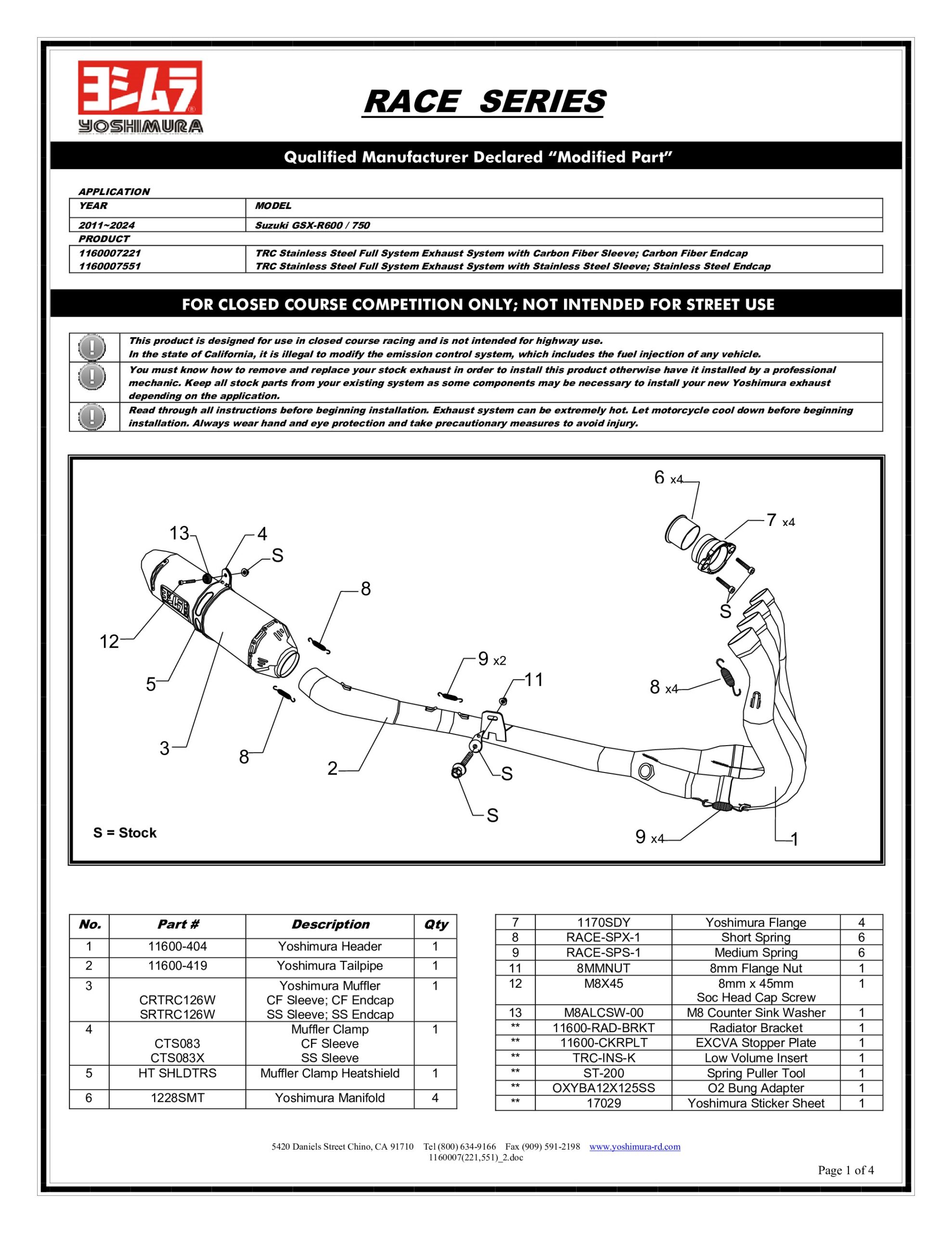 Yoshimura TRC Stainless Full Exhaust Fits 11-24 Suzuki GSXR600/750