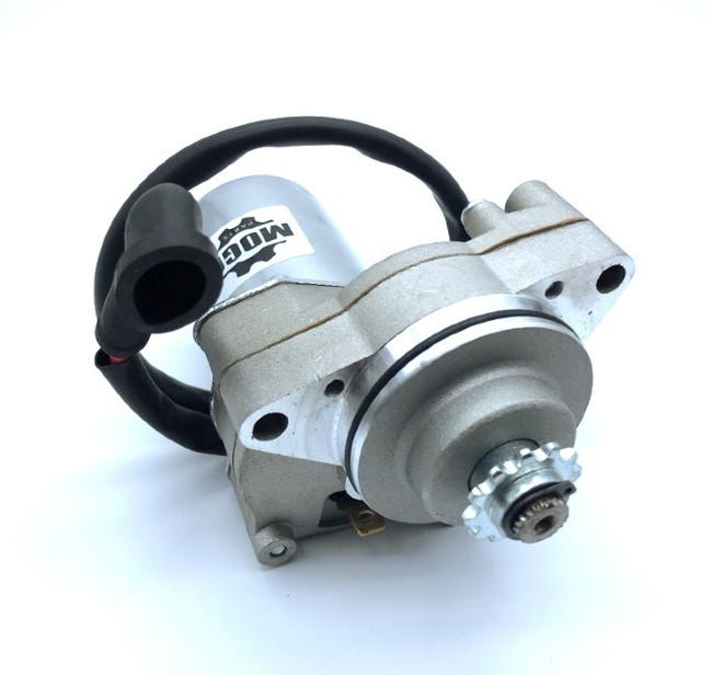 Includes wire to starter relay; approximately 15 inches long. Fits most Horizontal, 4 stroke Chinese engines (Gy6 clones) with upper or “above engine” mounted starters. Starter body diameter is about 2 inches and length is 5-3/4 inches. Fits many Apollo, E-Ton, Kayo, and other import ATVS.
