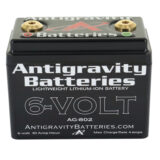 The Antigravity AG-802 is a reliable Lithium 6-Volt Battery in an ultra compact case. It measures at 4.375 x 2.37 x 3.75 inches (LxWxH to the top of the terminals). The current 6-Volt lead acid/batteries offered on today’s market are extremely unreliable and really not worth the effort as replacements. The AG-802 is a reliable replacement to your old 6V battery, with great performance benefits.Please note if you use older classic motorcycles from mid 1980s and earlier you should update the charging system to a modern voltage regulator.