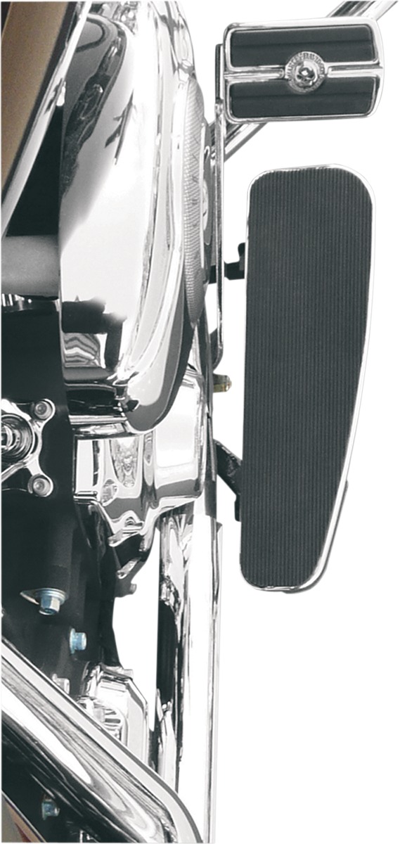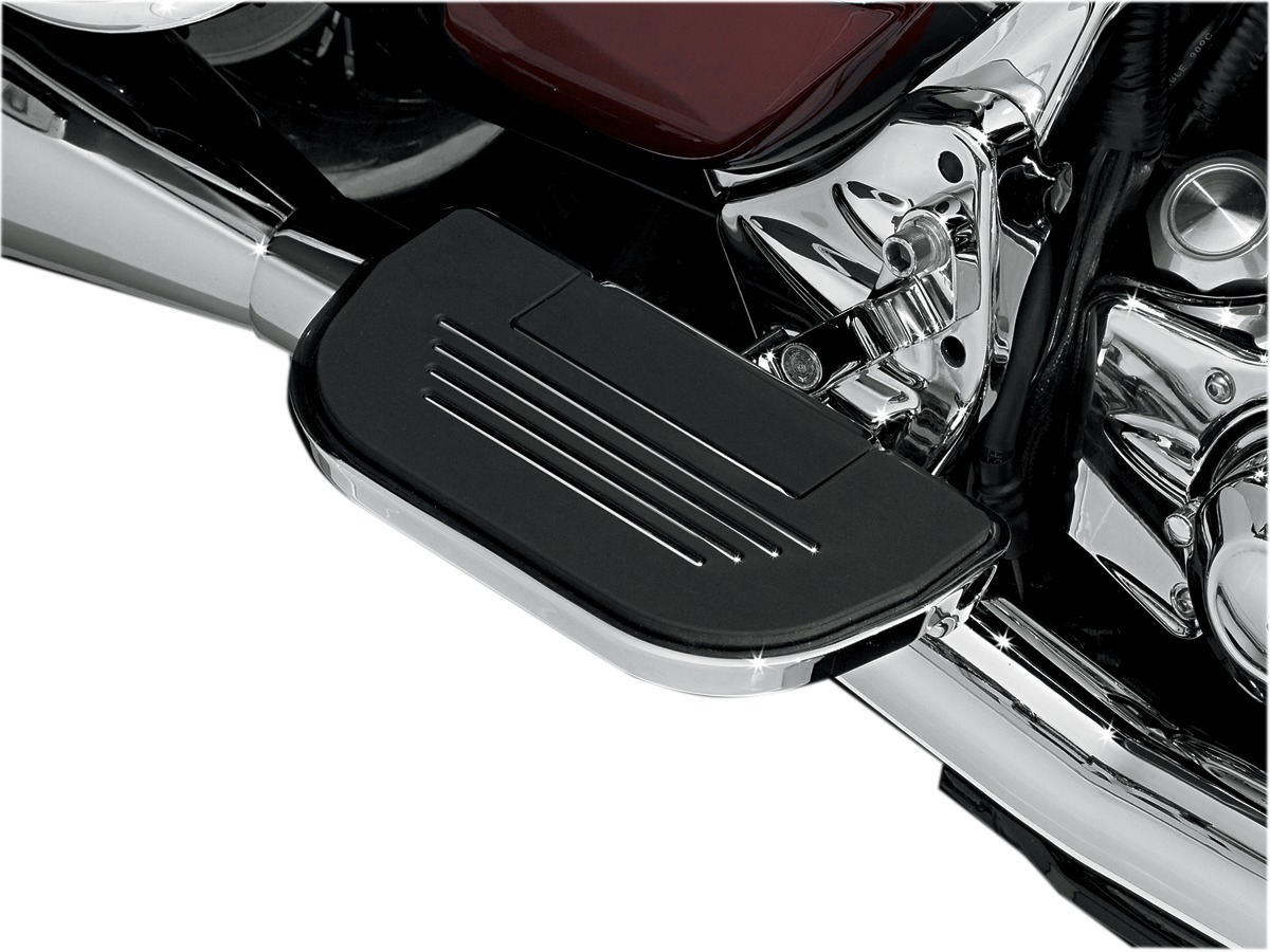 The Arlen Ness 10-Gauge Driver Floorboards offer a perfect blend of style, comfort, and functionality for your bike. Designed with a sleek, see-through aesthetic featuring machined accent cuts on the top and sides, these floorboards are crafted from forged billet aluminum for durability and a high-end finish. They are longer than stock floorboards, providing extra foot room and enhanced comfort for the rider. The driver boards feature three mounting locations, allowing up to 3 inches of adjustability for a personalized fit. Measuring 18″ long, 5-3/4″ wide, and 1″ thick, they are designed to deliver stability and comfort during rides. The matching passenger floorboards measure 7″ long, 4″ wide, and 1″ thick and are compatible with models that use OEM accessory floorboard mounts for passenger footpegs. All necessary mounting hardware is included for easy installation. These floorboards are a cutting-edge upgrade, combining lightweight construction with striking design to elevate the style and functionality of your bike.