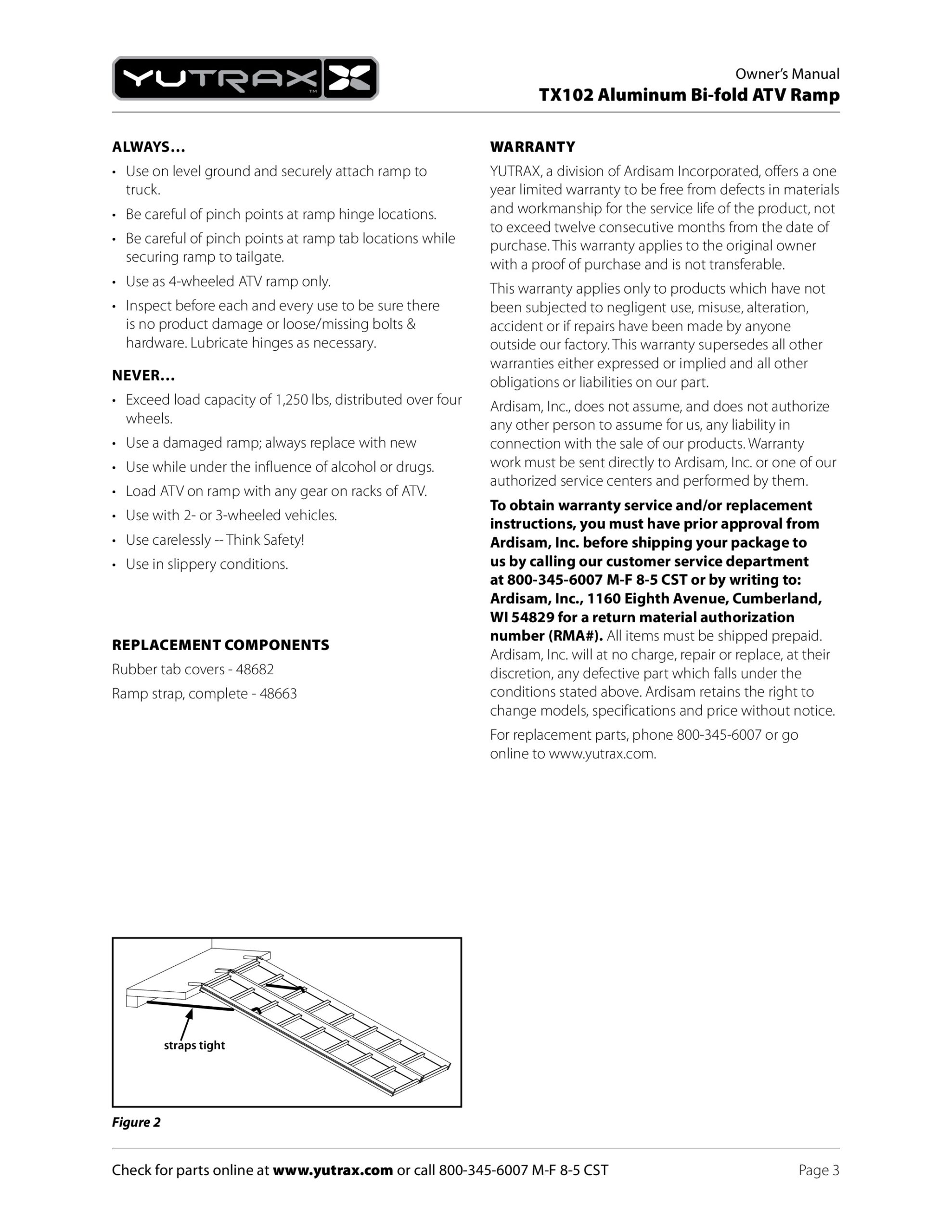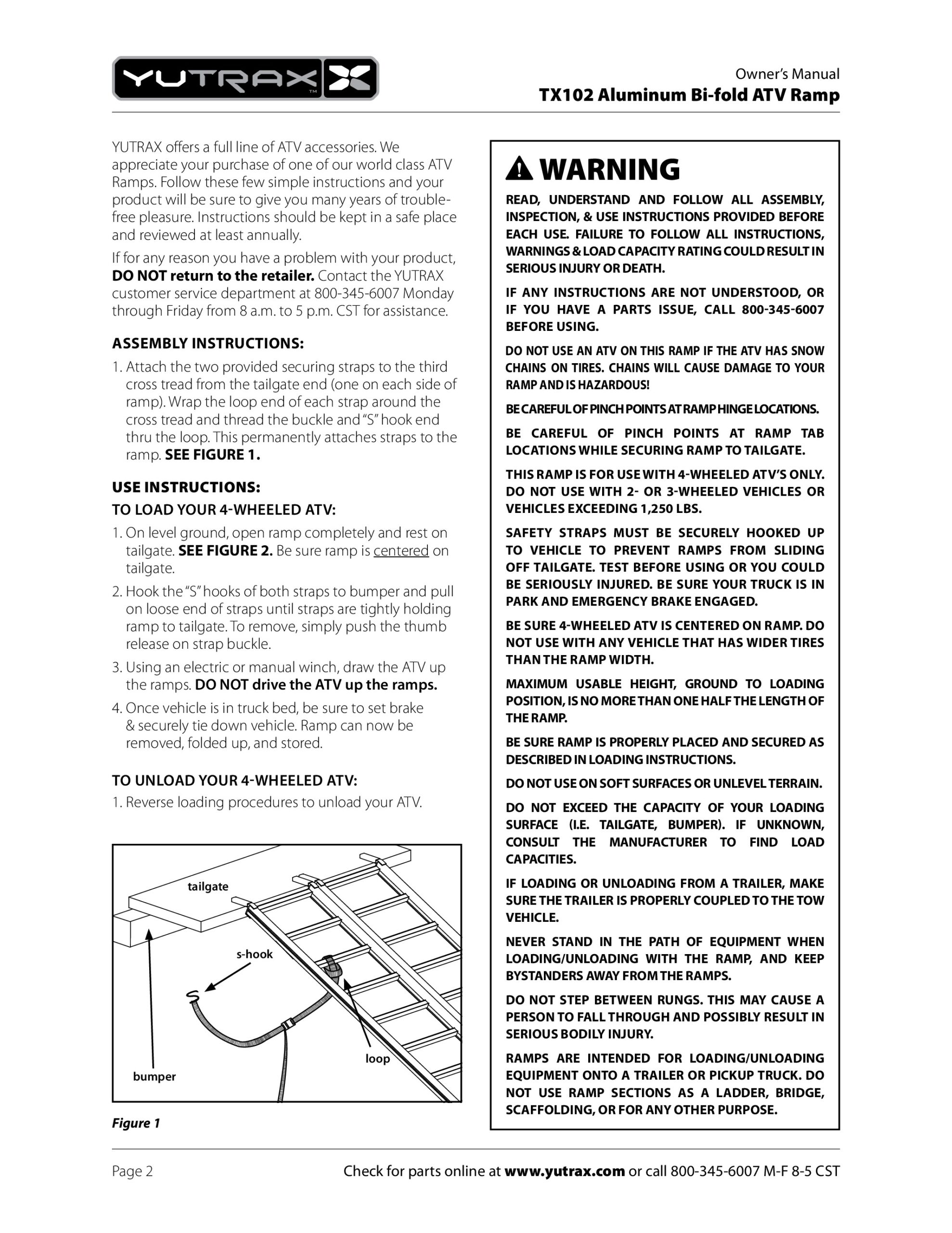 The lightweight, bi-fold design of YUTRAX TX102 is ideal for short bed pickup trucks and makes transporting your ATV a breeze. The fully welded aluminum construction and rectangular components will give you a sturdy ramp year after year. They’re a perfect option for loading vehicles that are low to the ground. Weighing only 20 pounds, with a weight capacity of 1,250 pounds. Folded dimensions are 69 inches long by 25 inches wide.