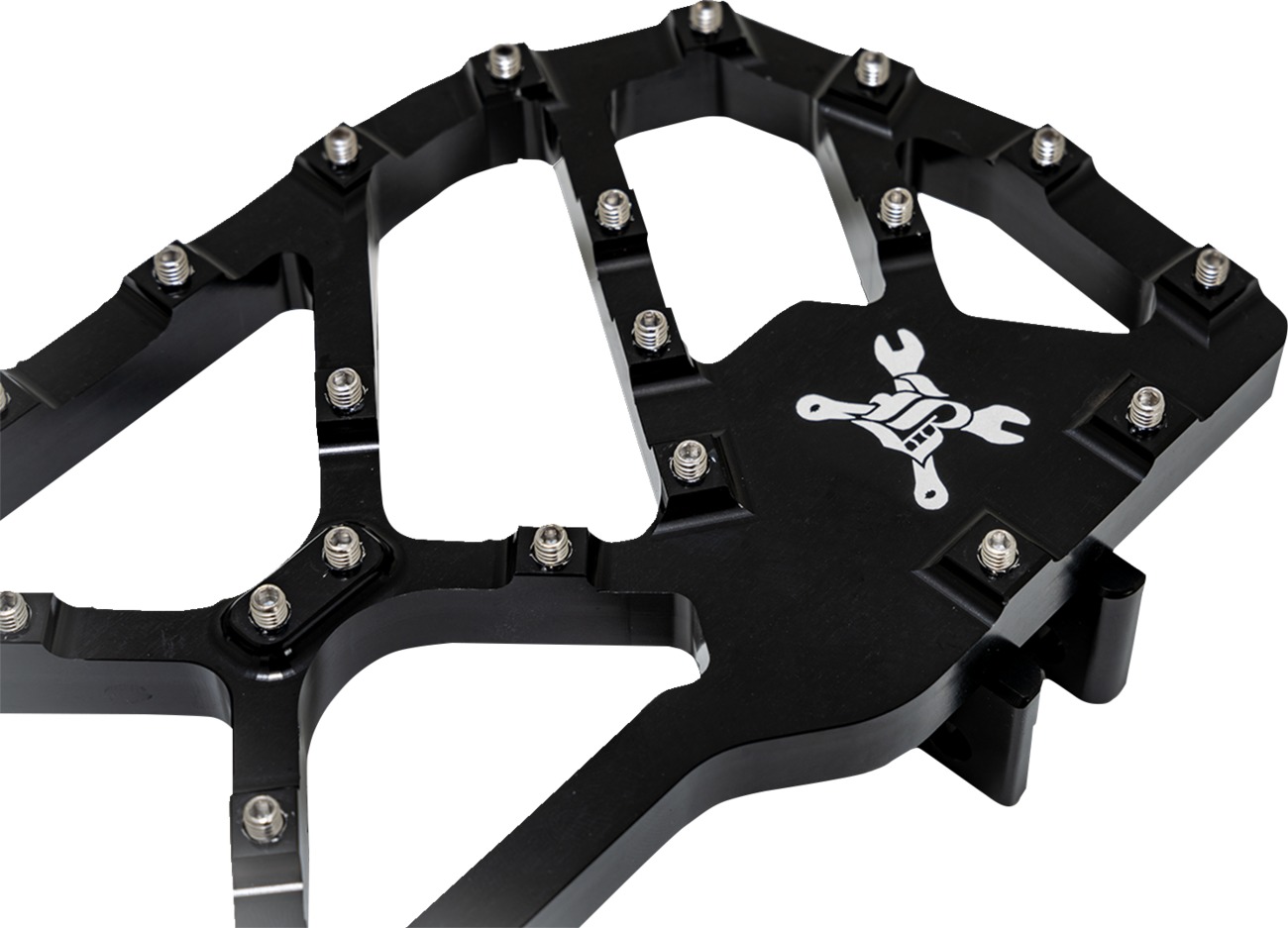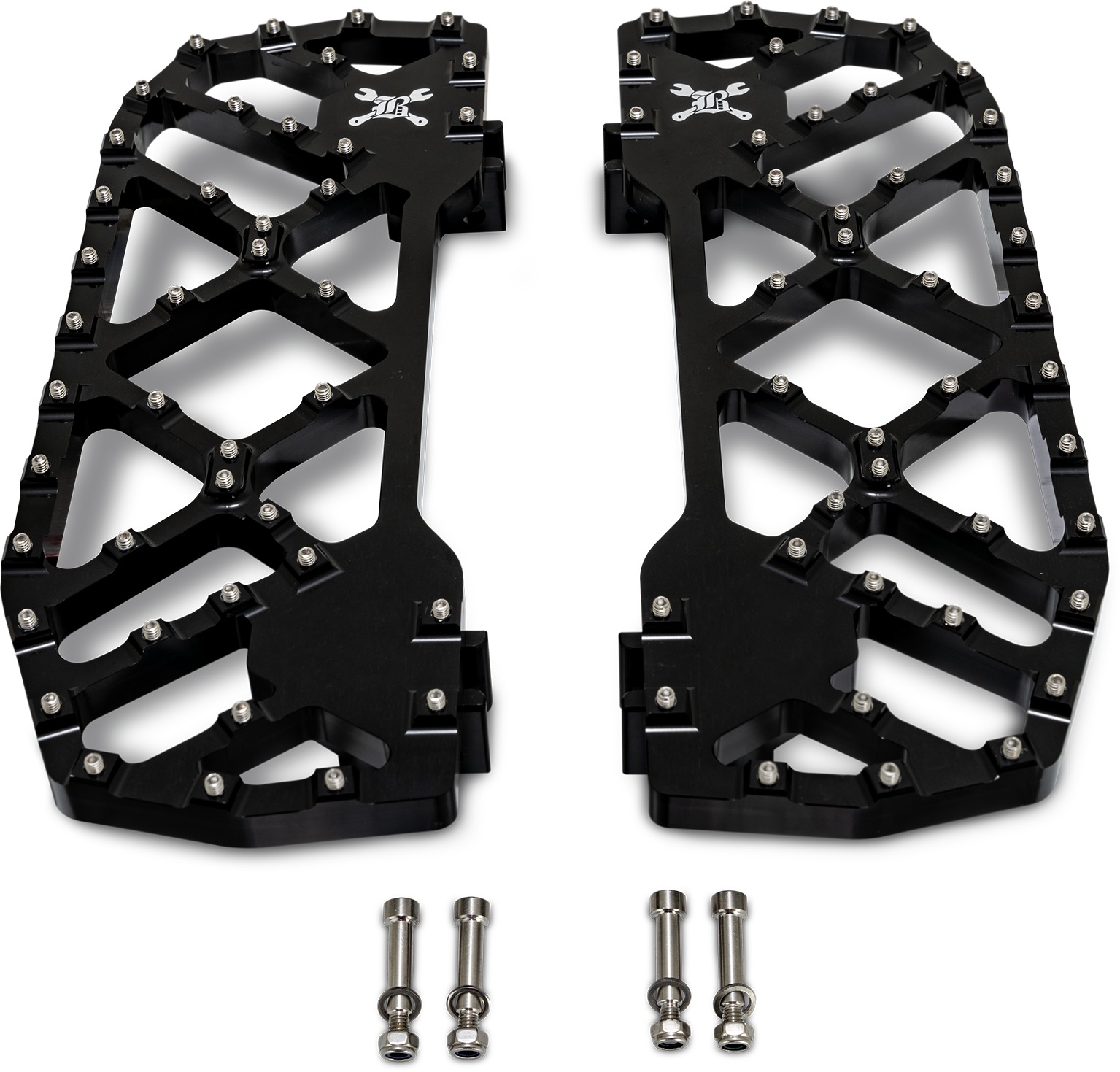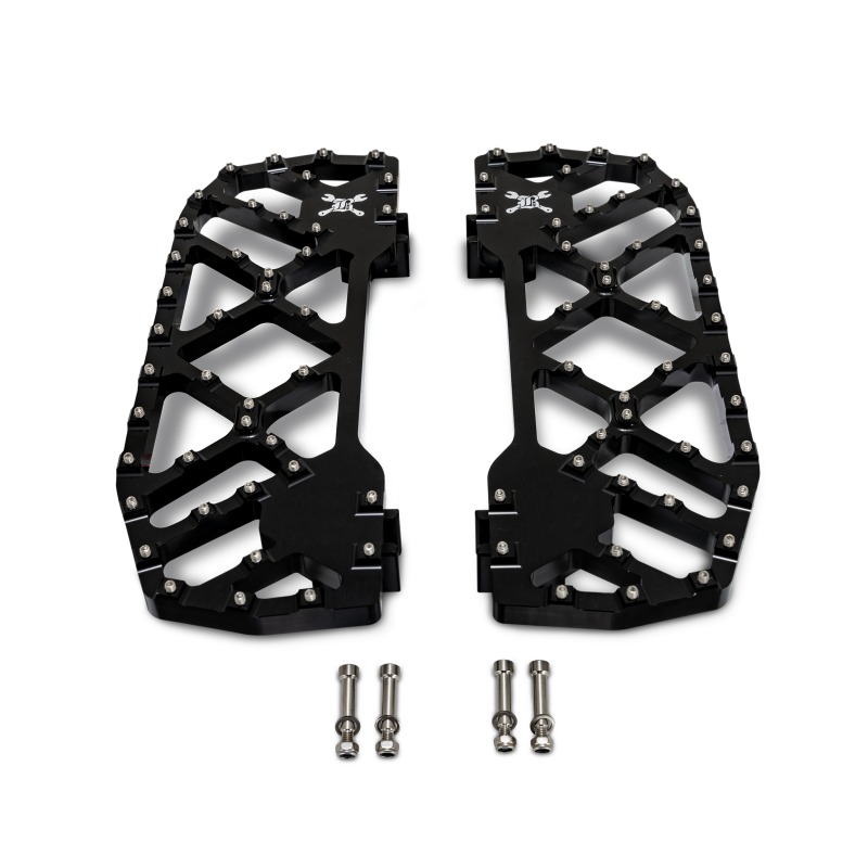 Upgrade your Harley-Davidson with Burly Brand’s MX-Evolution Floorboards in black. These square floorboards blend the iconic 1970s motocross look with modern precision CNC machining and lightweight, high-quality aluminum alloy construction. The laser-engraved Burly Brand logo offers a distinctive appearance, while set screws provide secure traction for a variety of riding styles. Designed for riders who value both style and performance, these floorboards are the perfect addition whether you’re seeking a vintage vibe or modern reliability.