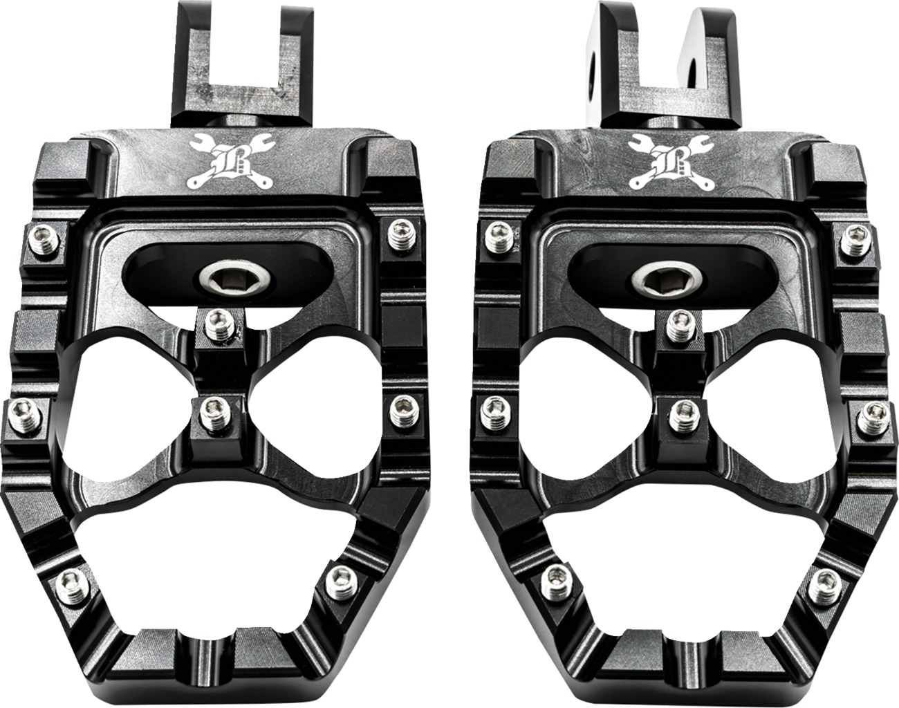 Crafted with precision CNC machining, the Burly Brand MX-Evolution Pegs bring a modern twist to the classic 1970s motocross aesthetic. Made from high-quality aluminum alloy, these square-shaped footpegs are designed for optimal performance and durability. The pegs feature an adjustable clevis system for customized positioning and set screws for a secure grip. Etched with the iconic Burly Brand logo, they offer both top-tier functionality and distinctive style. Compatible with various Harley-Davidson Softail FX models from 2018 to 2024.