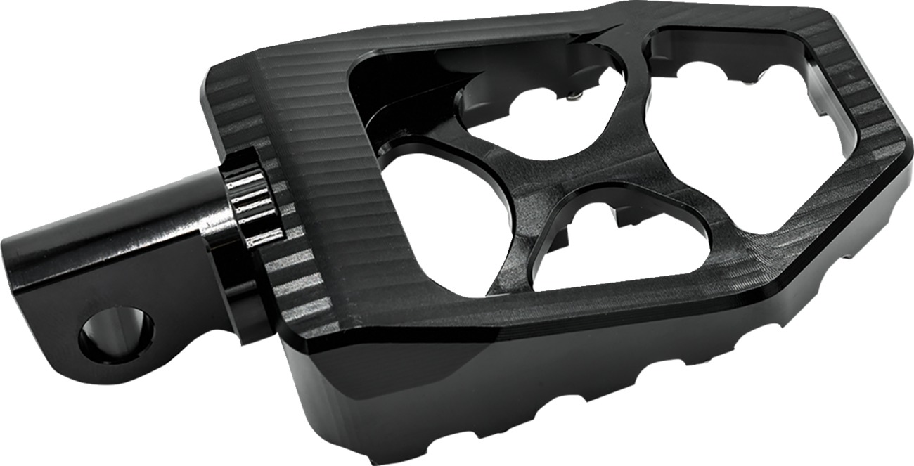 Crafted with precision CNC machining, the Burly Brand MX-Evolution Footpegs deliver a modern twist on the iconic 1970s motocross aesthetic. Designed for Harley-Davidson riders from 1997 to 2022, these footpegs offer a square profile and are etched with the Burly Brand logo for a bold look. Featuring an adjustable clevis system for customizable placement and set screws for superior grip, they ensure stability and control in any riding condition. Made from lightweight, high-grade aluminum alloy, these pegs are built for durability and performance.