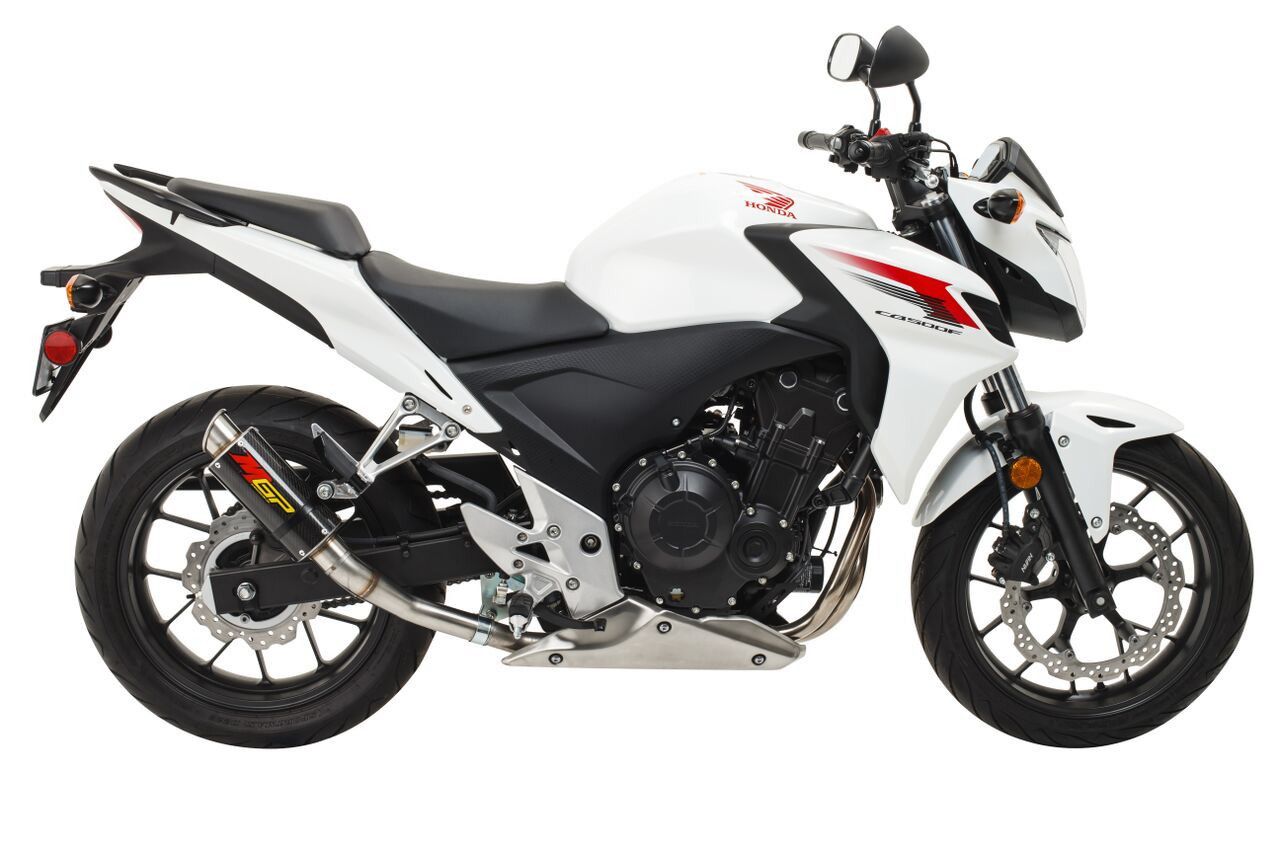 Hotbodies Racing is proud to present the MGP exhaust kit for the CBR / CB 300 & CBR / CB 500 models. The Honda CBR / CB 300 & CBR / CB 500 models are sportbikes that changes the definition of the middleweight class. These motorcycles introduce value, fun, and performance in a package like no other. This torquey parallel-twin exemplifies comfort for daily commuting, while keeping the fun levels up on high for the weekend. The MGP growler exhaust kit has set the benchmark for high performance slip-ons in the market. The short canister design delivers the look, sound, and value to enhance your ride to the next level.