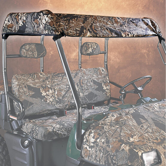 The Division UTV Roof Cap in Mossy Oak Break-Up is designed for 2002-2008 Polaris Ranger models. This roof cap provides overhead protection from sun, rain, and debris while blending seamlessly with natural surroundings thanks to its Mossy Oak Break-Up camouflage pattern. It is made from durable materials to withstand outdoor conditions and is easy to install, offering a secure fit for your UTV.