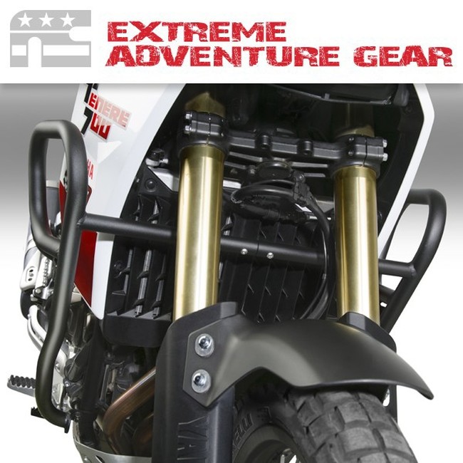 Our new P4201 Adventure Side Guards for the Ténéré 700 are made from durable powdercoated steel and can stand up to the most extreme abuse. Designed for off-road protection, they also offer options for mounting supplemental lighting, adventure luggage, or your favorite deer whistle. Plus, they look really great!