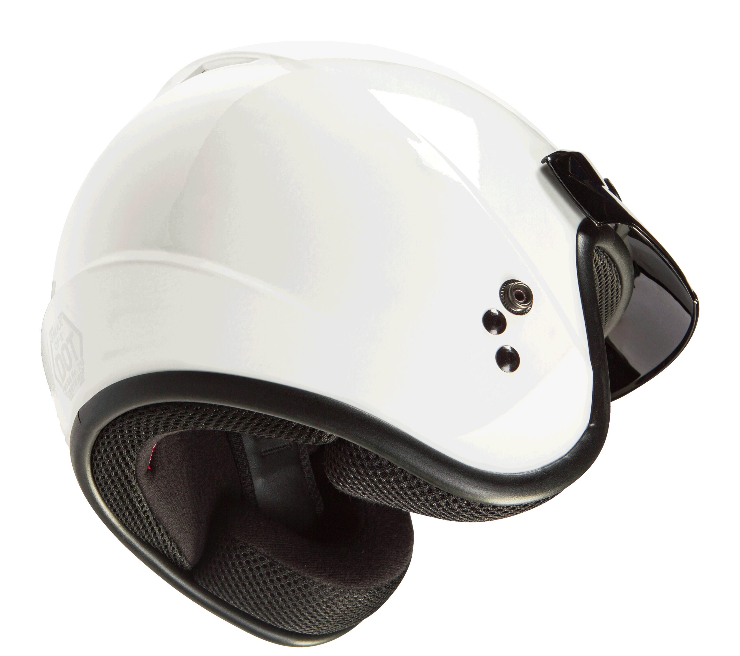 The GMAX OF-2 Open-Face Helmet in gloss white brings you the latest features from the popular GM-2 model, now with a removable, adjustable, and washable COOLMAX® interior for easy cleaning and a custom fit. A traditional 3/4 helmet design, the OF-2 offers a 5-snap system that accommodates a range of shields and visors, making it highly versatile for street riders. DOT approved for safety, this helmet includes a 3-snap visor and is available in a variety of sizes to suit both adults and youth. Optional flip-up shields and comfort liners are available to further enhance your riding experience. Enjoy affordable family fun and reliable protection with the GMAX OF-2.