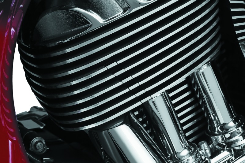 Enhance your Indian Thunder Stroke 111 engine with Kuryakyn Exhaust Port Fillers in black and raw finish. These fillers provide a fully finned appearance by filling the gap between the cylinder head and exhaust port, seamlessly matching the machined outer edges of the cylinder heads. A simple but significant style upgrade for a clean, custom look.